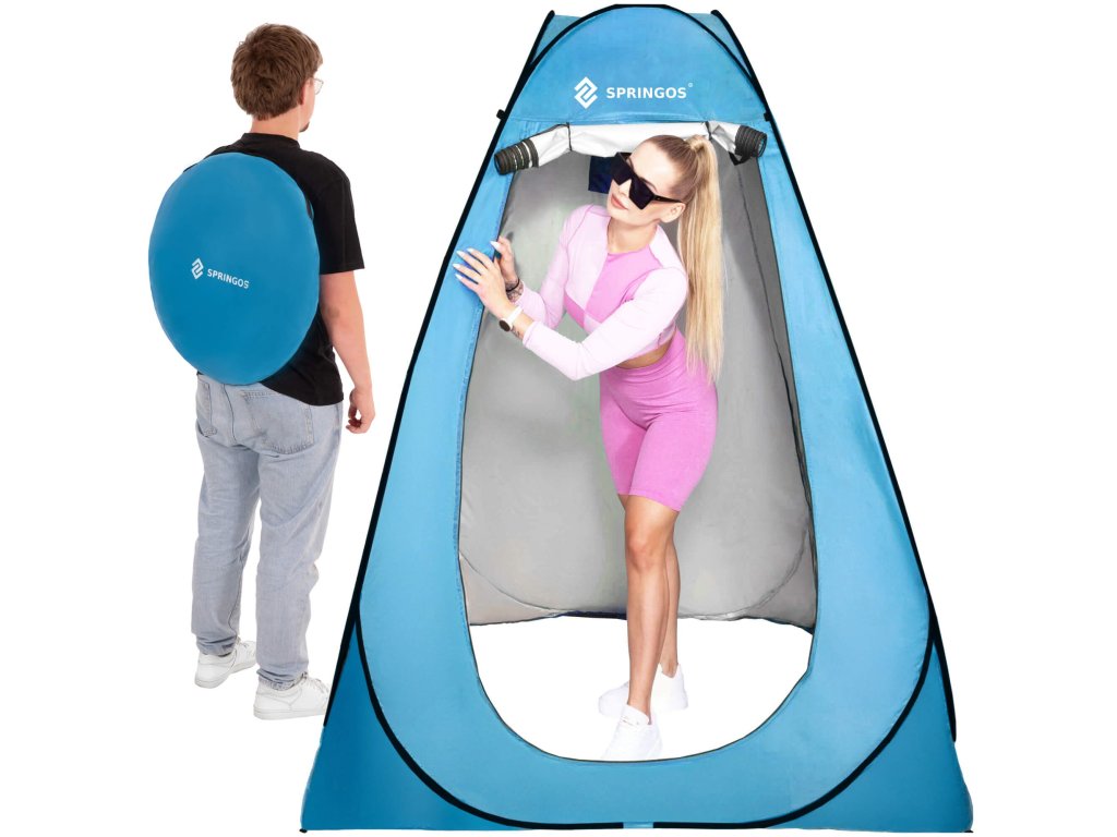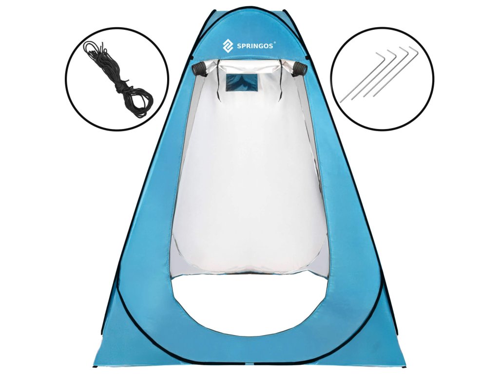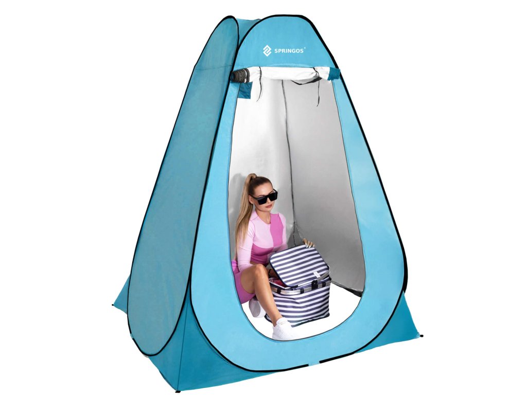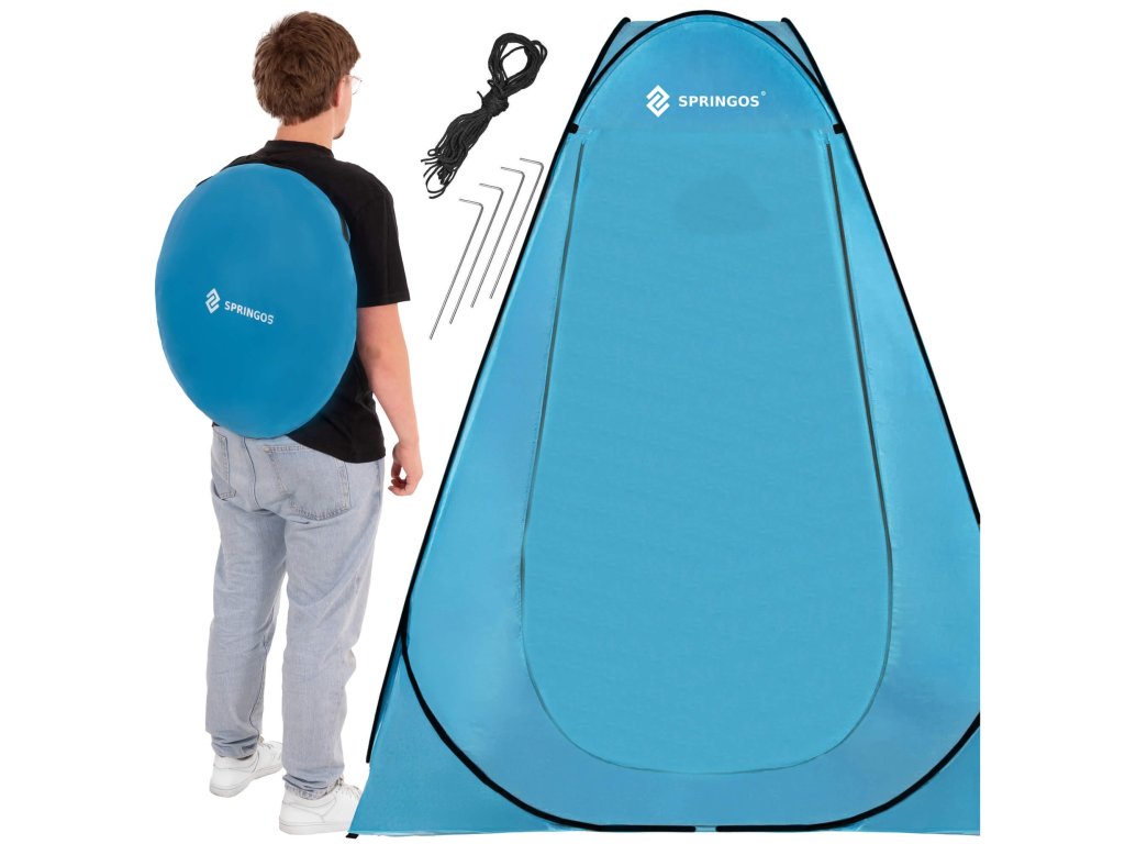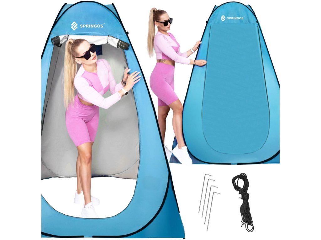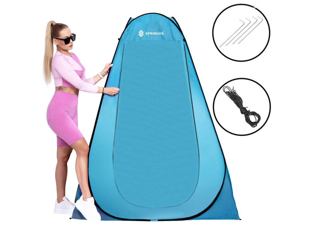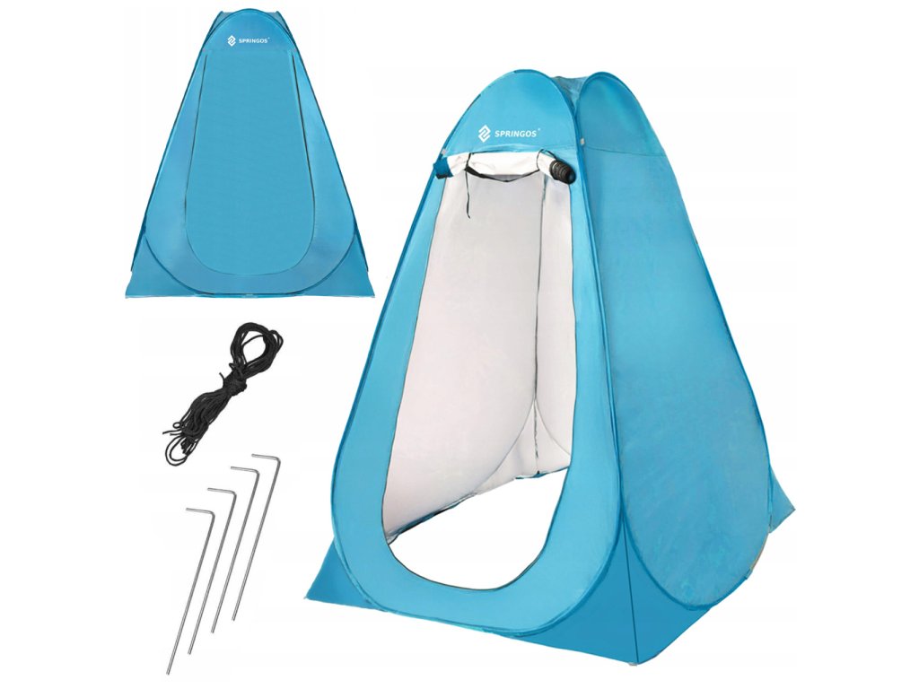 - Na vrhu na vsakem vogalu stene 4 nastavki preko katerih lahko napelješ vrvice in pritrdite kabino za preoblačenje, da bo stabilna in se ne bo majala na vetru