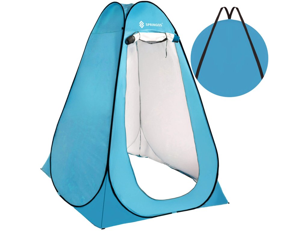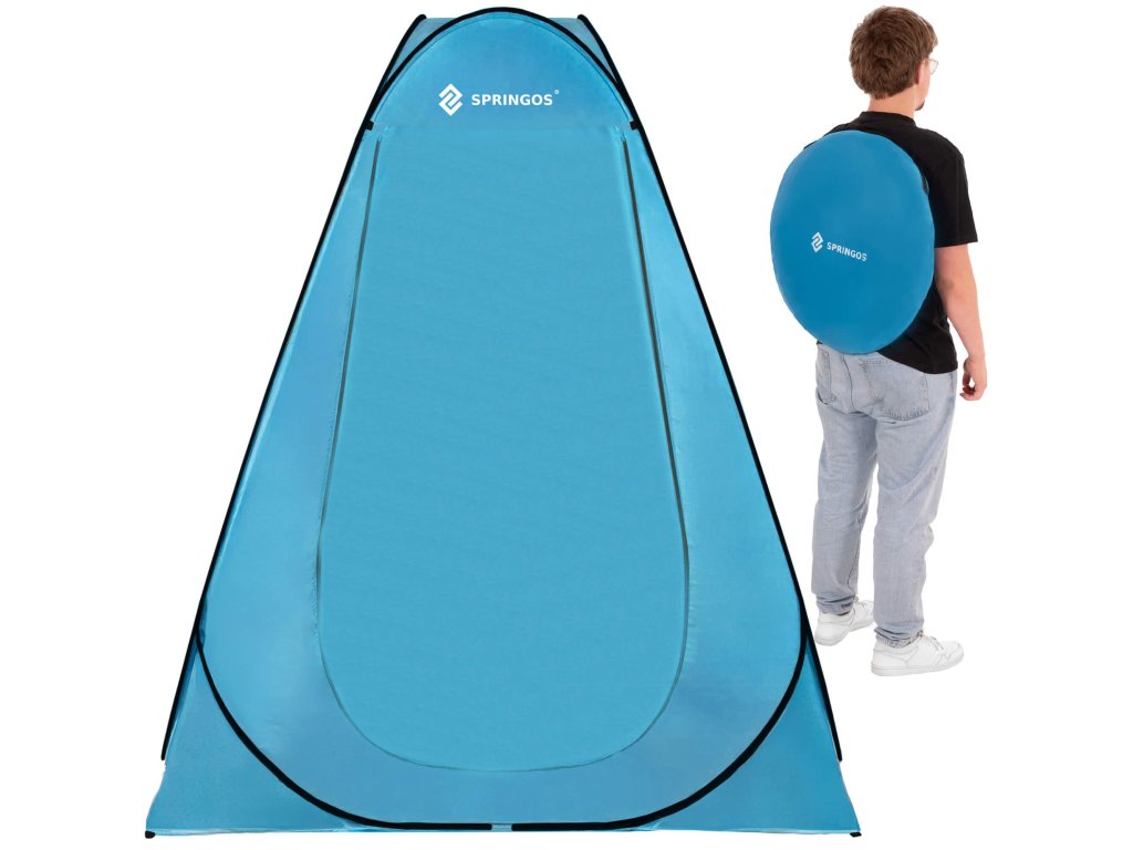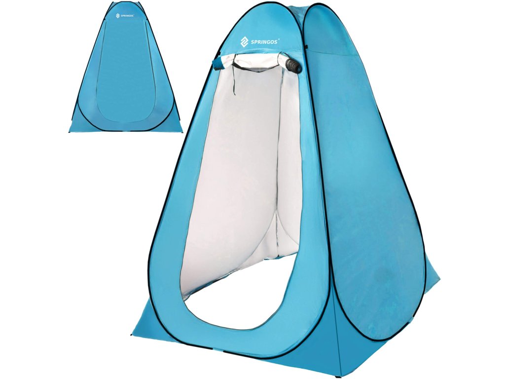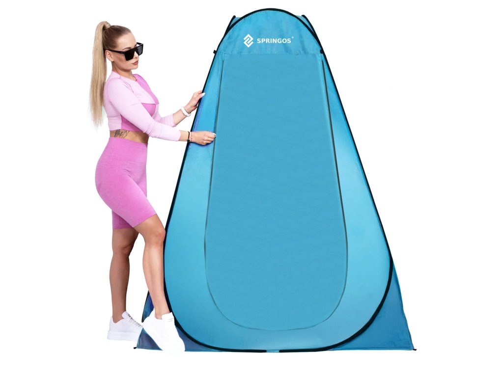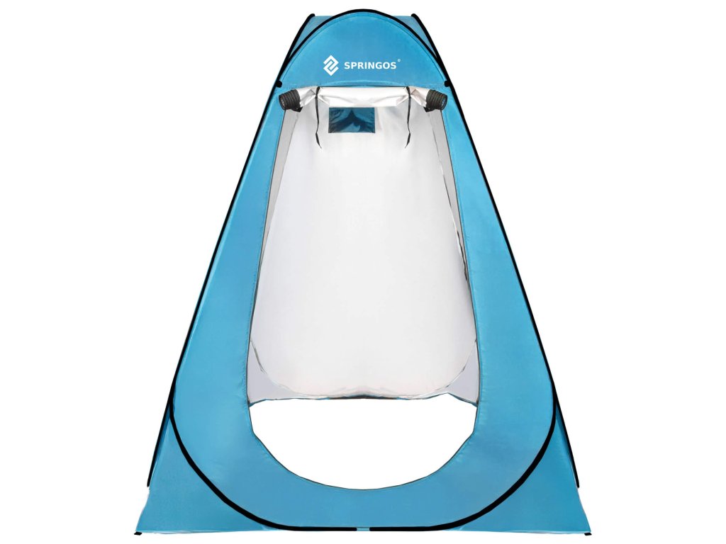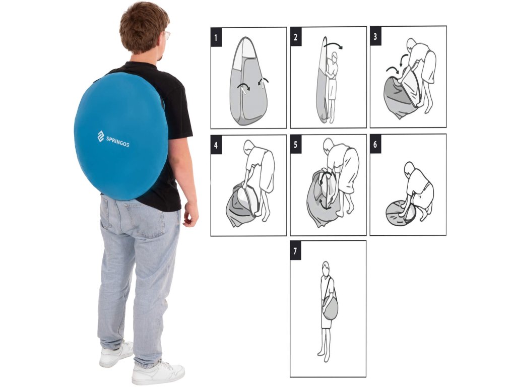 - Na vrhu na vsakem vogalu stene 4 nastavki preko katerih lahko napelješ vrvice in pritrdite kabino za preoblačenje, da bo stabilna in se ne bo majala na vetru