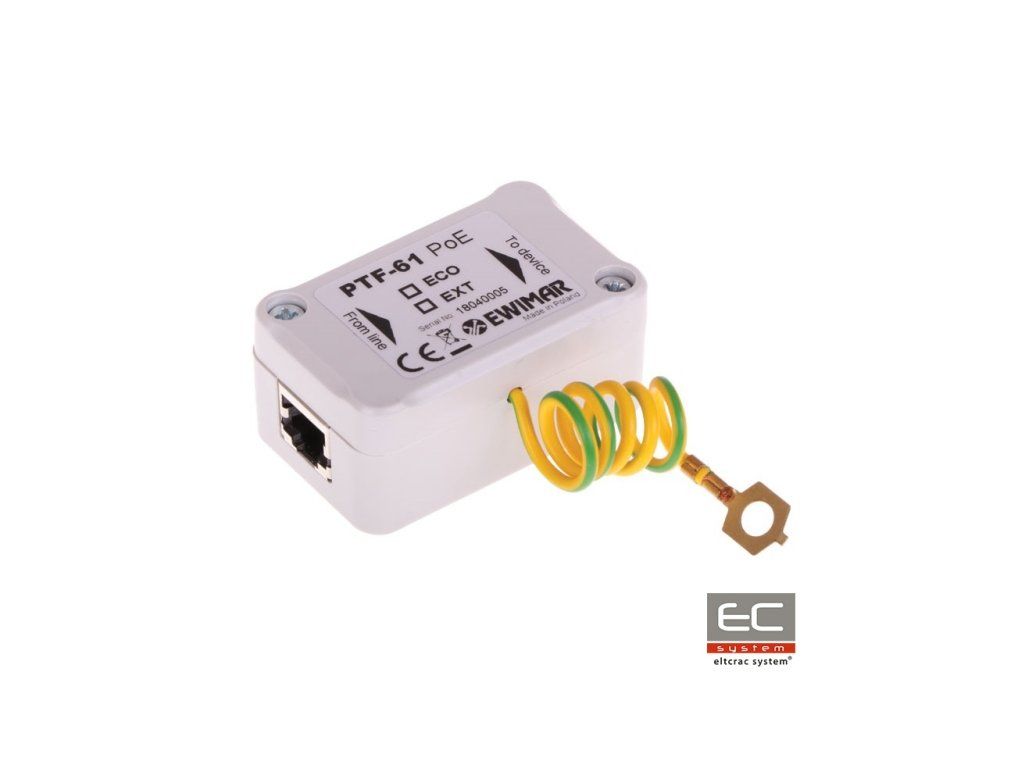 Enokanalska zaščita PTF-61-EXT/PoE je naprava, odgovorna za zaščito npr. IP kamer, LAN stikal, usmerjevalnikov, WiFi dostopnih točk in drugih naprav, ki delujejo v Gigabit Ethernet omrežju. Naprava je združljiva z standardi 10Base-T, 100Base-T in 1000Base-T. Odlični parametri prenosa podatkov, ki so zahtevani v kablovju kategorije 6, so doseženi zahvaljujoč inovativnim večplastnim veznim ploščam. PTF-61-EXT/PoE uporablja tri ravni zaščite, ki z uporabo tehnologije MOSFET učinkovito filtrirajo prenapolnjenja, ki vstopajo skozi kablovje in uvajajo dodatno izolacijsko blazino v primeru prisotnosti velikih potencialov med LAN stikalom in končnimi točkami, kot so npr. PC, IP kamere ali PLC krmilniki. Napajalni viri končnih naprav so zaščiteni pred poškodbami preko neodvisnih vezij zaščite napajanja PoE, ki odpravljajo povečanje napetosti med pari 1,2 - 3,6 in 4,5 - 7,8 zaradi prenapolnitev, ki jih povzročajo strele ali nekontroliranemu povečanju napetosti. Zaščita lahko deluje kot samostojna naprava ali pa je pritrjena na steno z ozemljitvijo, pritrjeno z vodnikom.