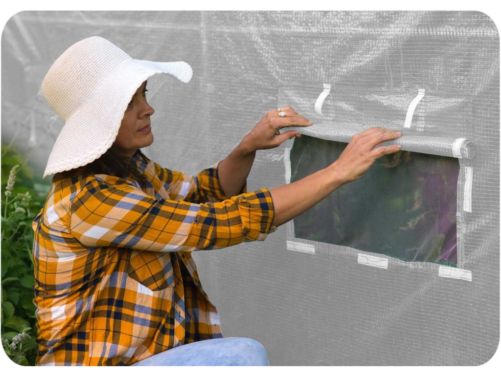 - okna omogočajo nadzor pridelka brez potrebe po odpiranju in vstopanju v notranjost vrtnega tunela,