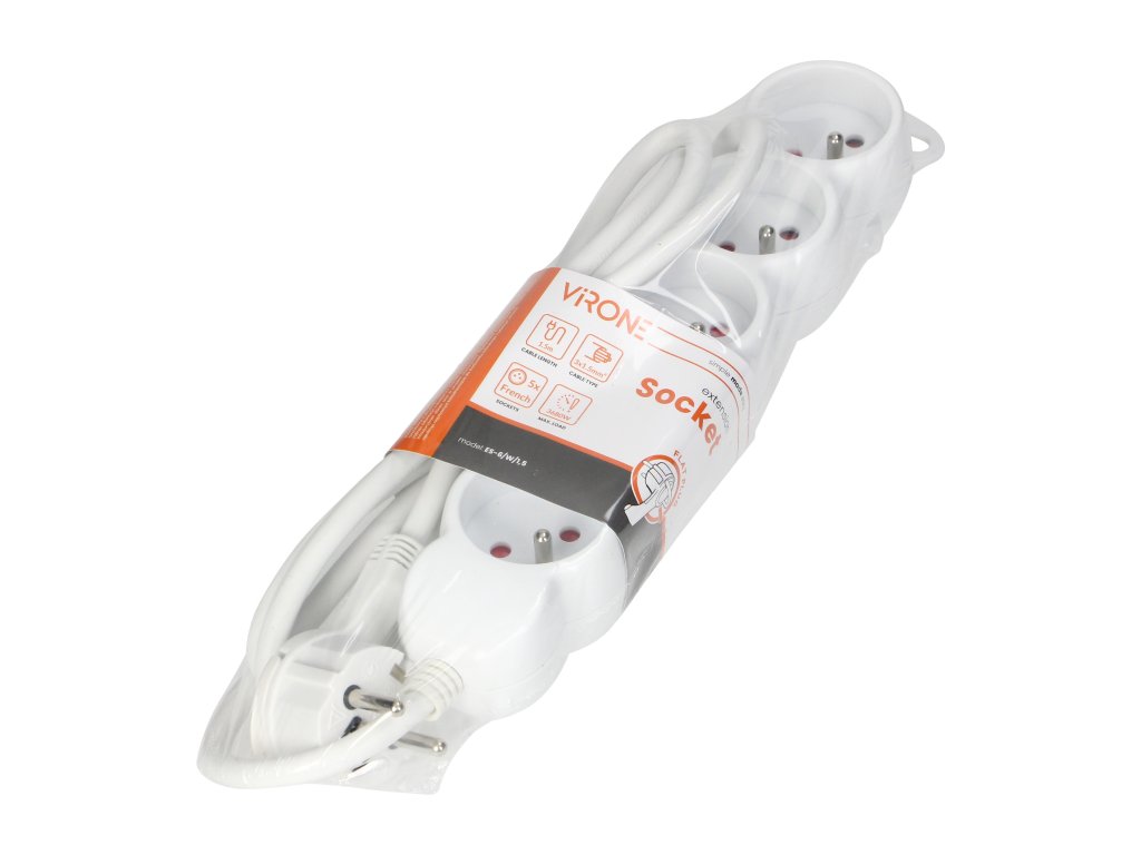 Razdelilec z 5 vtičnicami, 1,5 m, bel, 16A