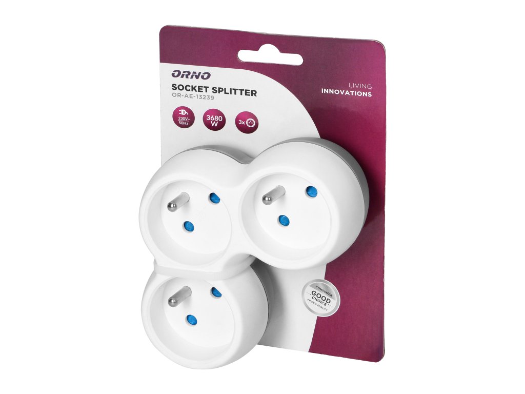 - Praktična uporaba: Zahvaljujoč trem vtičnicam tipa 2P+E lahko naenkrat povežete več naprav brez iskanja dodatne električne vtičnice. Razdelilnik je idealen za uporabo s televizorji, računalniki, polnilci, svetilkami in drugo pogosto uporabljano elektroniko.