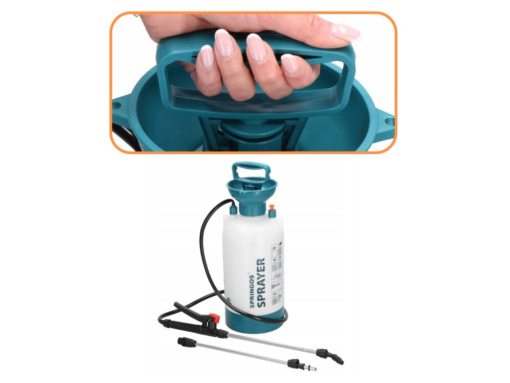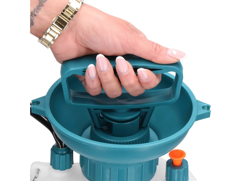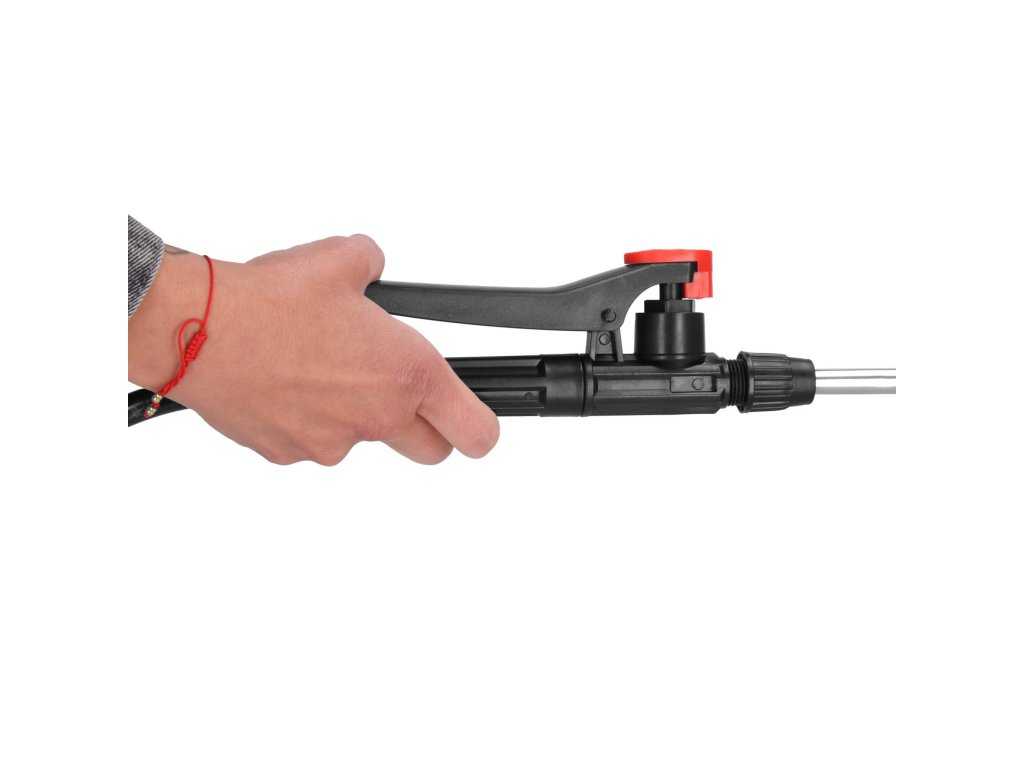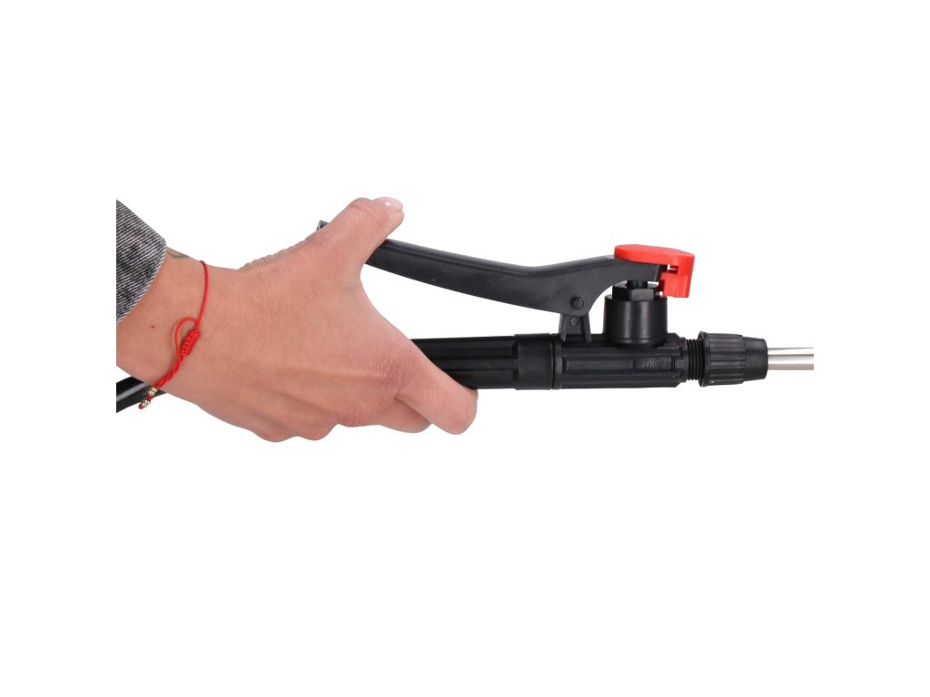 - Na ročaju je rdeč gumb, ki zaklene in odklene zalivalnik