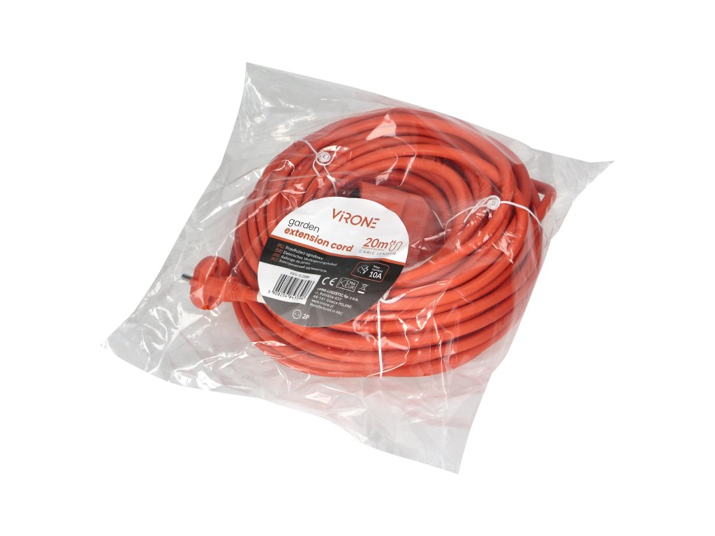 - Dolžina kabla: 20 metrov – zagotavlja zadosten doseg tudi v večjih prostorih, idealen za vrtove, delavnice ali garaže.