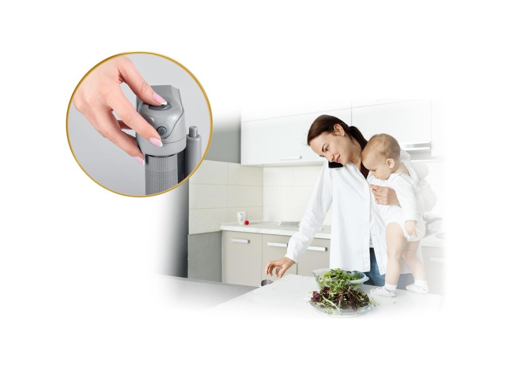 Po zlaganju ograja ne otežuje gibanja vašega otroka, zato se lahko prosto giba med prostori, tudi pri plazenju ali uporabi potiskalca ali drugih igrač.