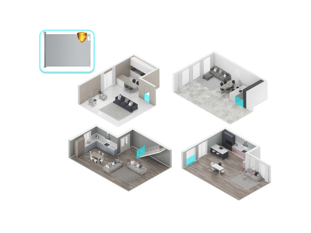 Ovira ne ovira komunikacije med prostori. Po zlaganju se lahko prosto gibate po celotnem prostoru (tudi z vozičkom ali vozičkom!)