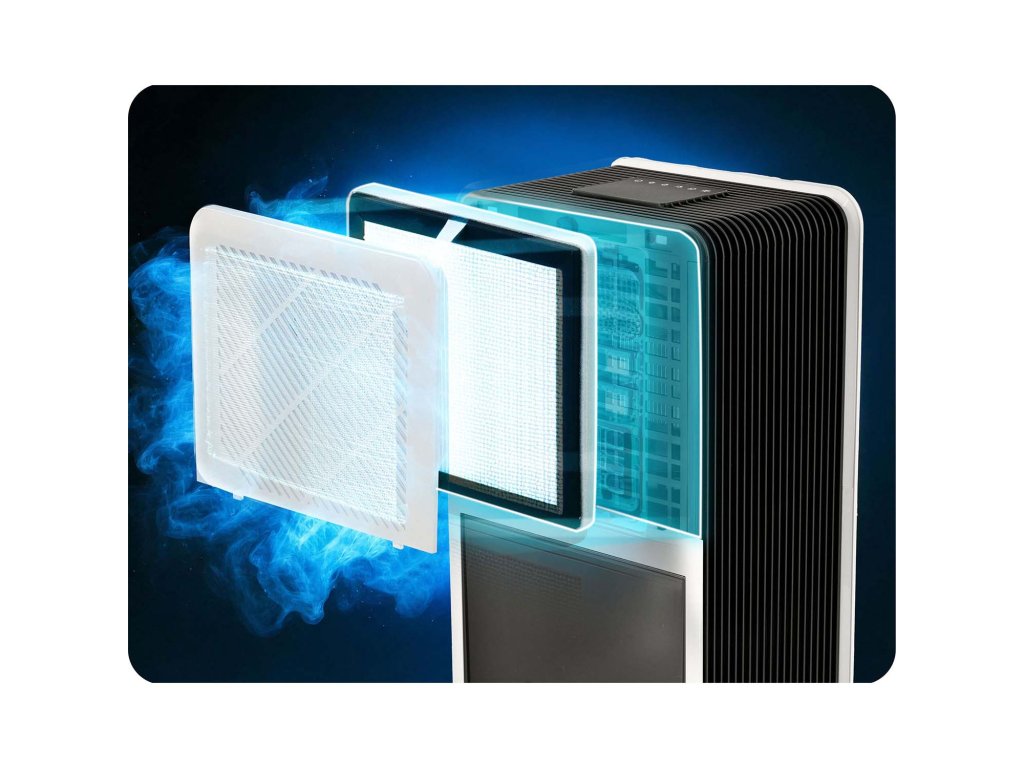 Razvlaževalec je opremljen s filtrom HEPA H13 z učinkovitostjo (CADR) 105 m3/h čisti zrak od nečistoč, kot so PM 2.5 in formaldehid, kar nudi bolj zdravo okolje.
