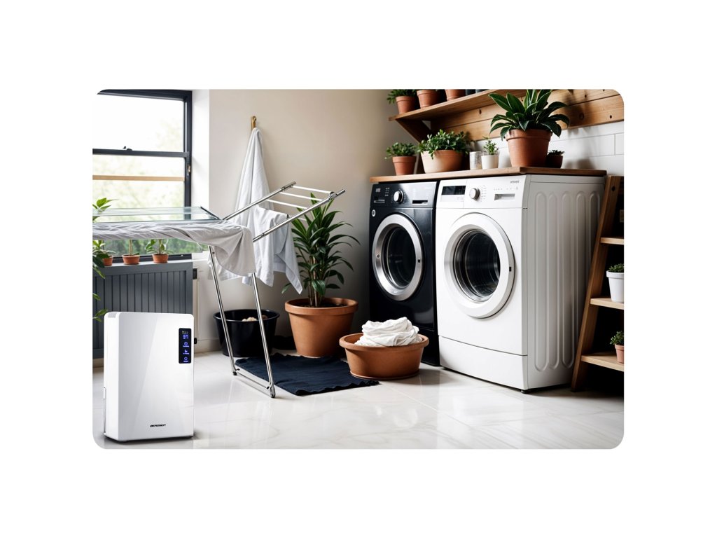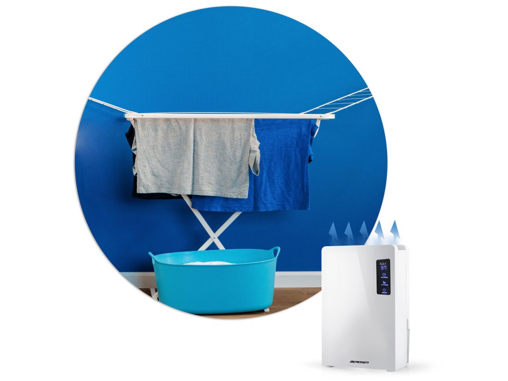 - preprečuje vlaženje okolja, absorbira vlago iz perila.