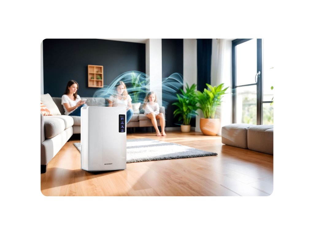 Odvlaževalnik zraka skrbi za pravilno regulacijo ravni vlažnosti zraka v prostorih, s čimer ustvarja zdravo in čisto okolje v domu.