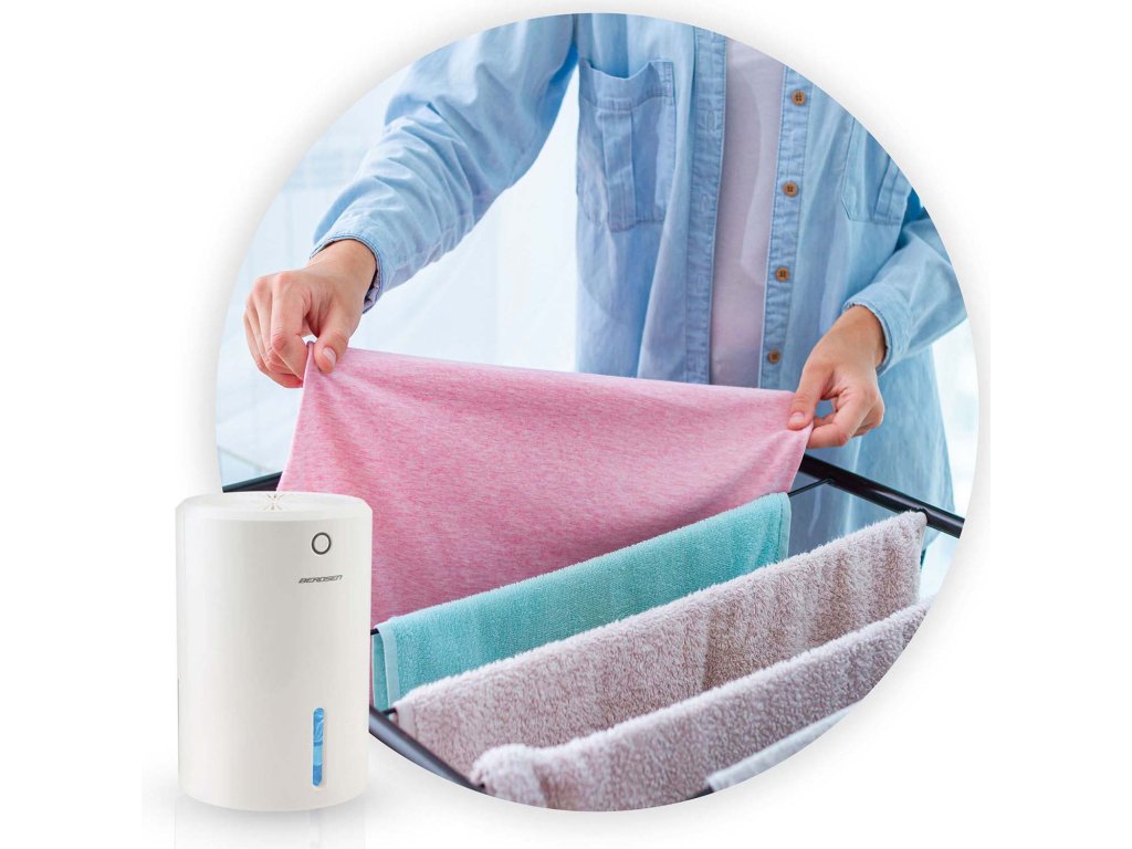 Skrajša čas sušenja oblačil- – razvlaževalnik intenzivno suši zrak, pospešuje naravni proces izhlapevanja vlage iz perila.