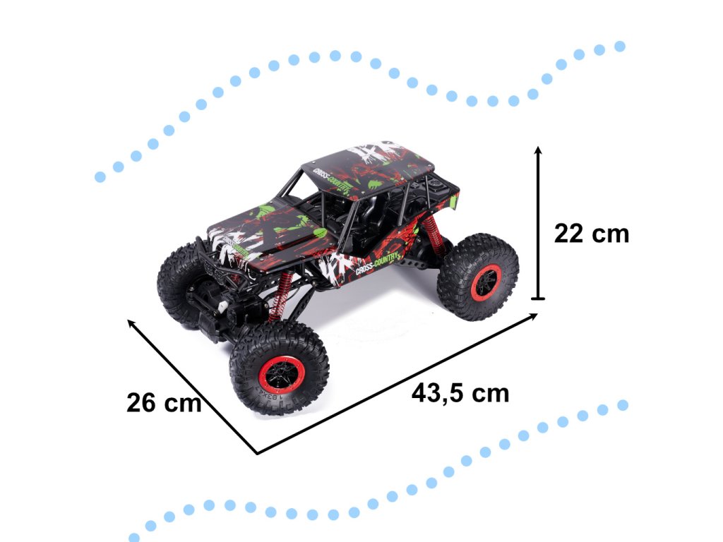 Vozidlo je veľmi pôsobivé, má mimoriadne veľké rozmery a fantastický vzhľad - je vyrobené v mierke 1:10 a kopíruje skutočné terénne vozidlo.
