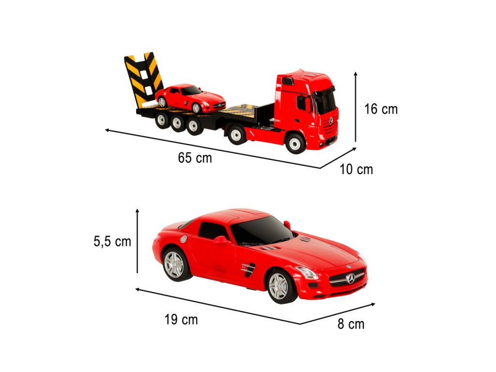 vsebuje dva modela - vsebuje dve vozili: tovorno vozilo Mercedes-Benz Actros in športno vozilo Mercedes-Benz SLS AMG, oba z natančno reprodukcijo avtentičnih različic vozil