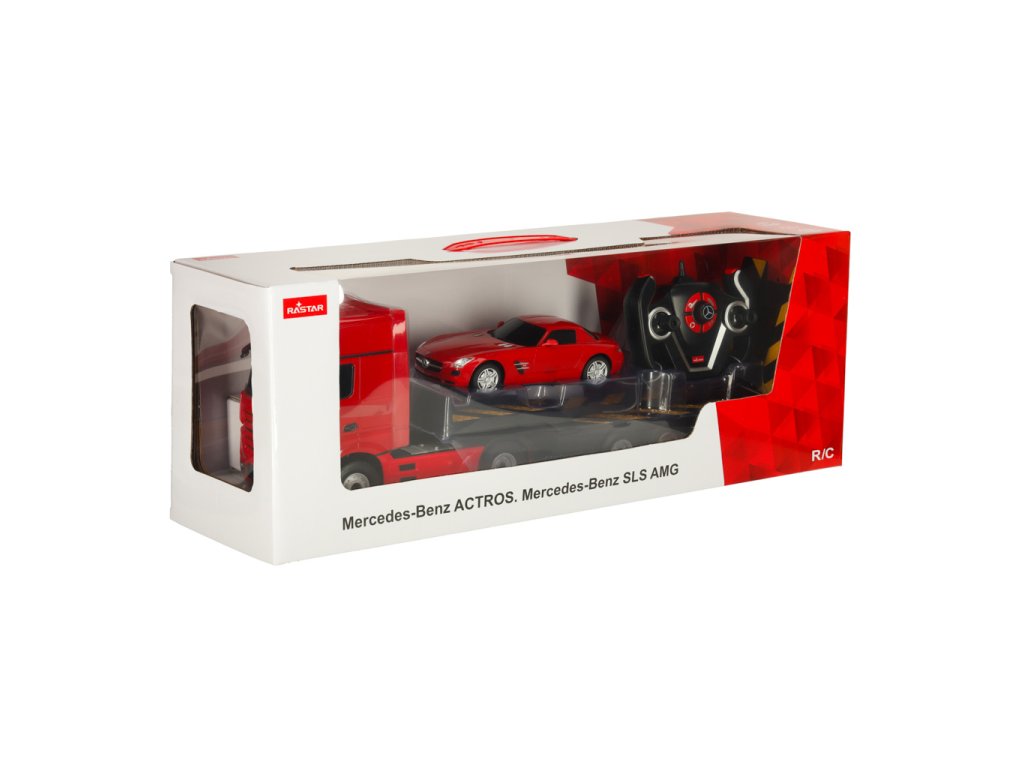 Rastar 74920 Komplet Mercedes-Benz na daljinsko vodenje je edinstvena ponudba za male avtomobilske navdušence! Komplet vsebuje dva modela - impresivnitovorni avtomobil Mercedes-Benz Actros in športni Mercedes-Benz SLS AMG. Obe vozili odlikuje podrobna reprodukcija avtentičnih avtomobilov.