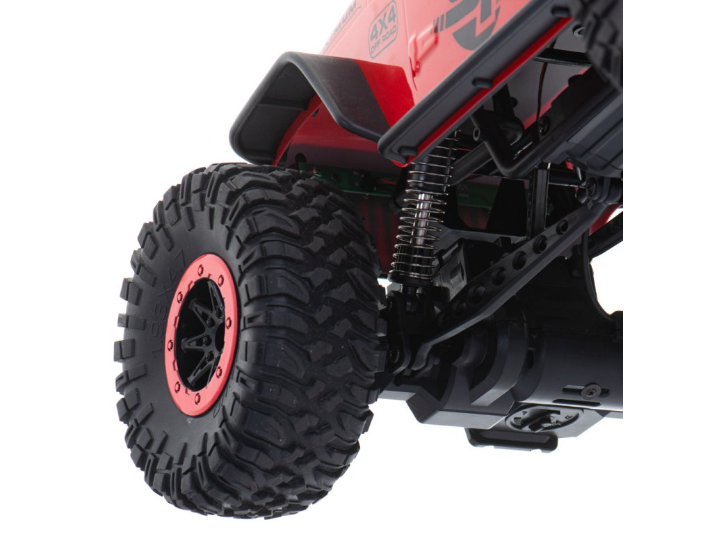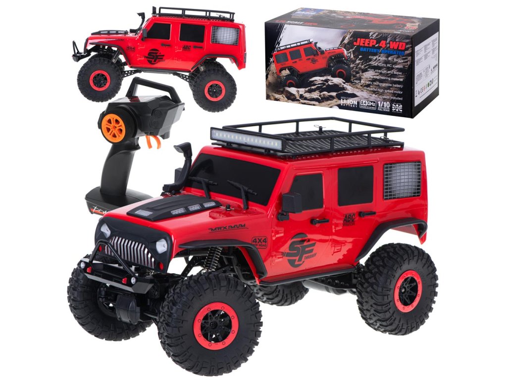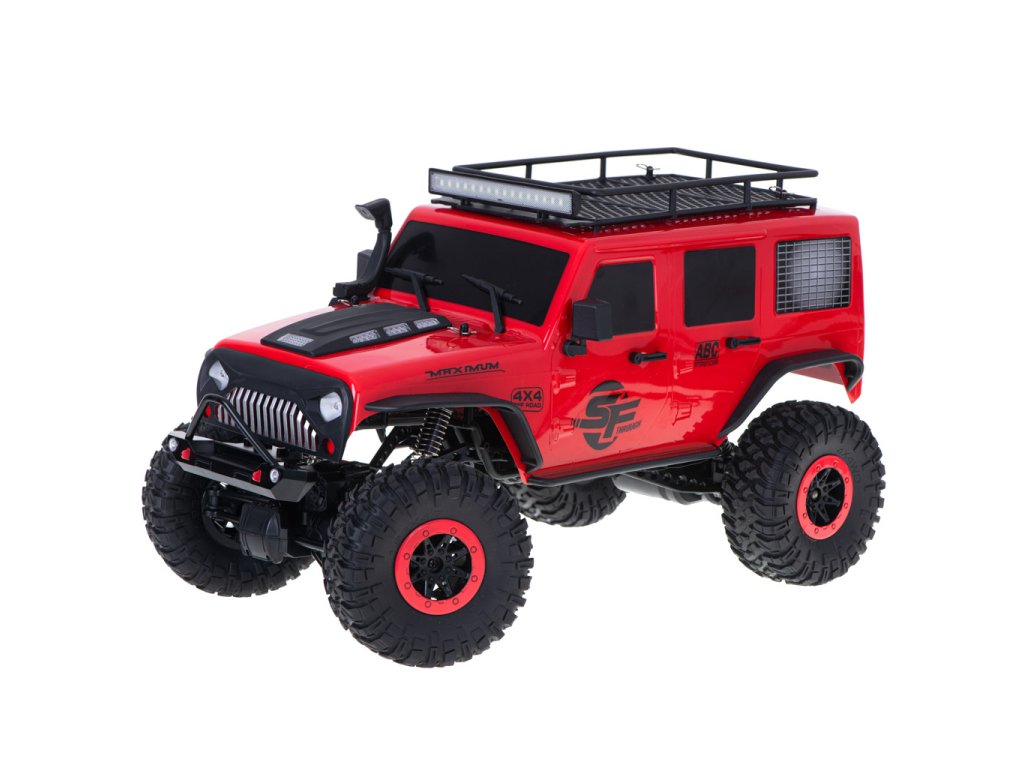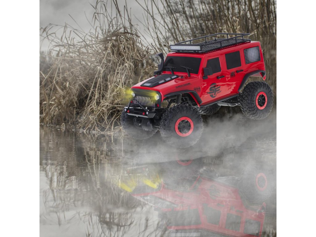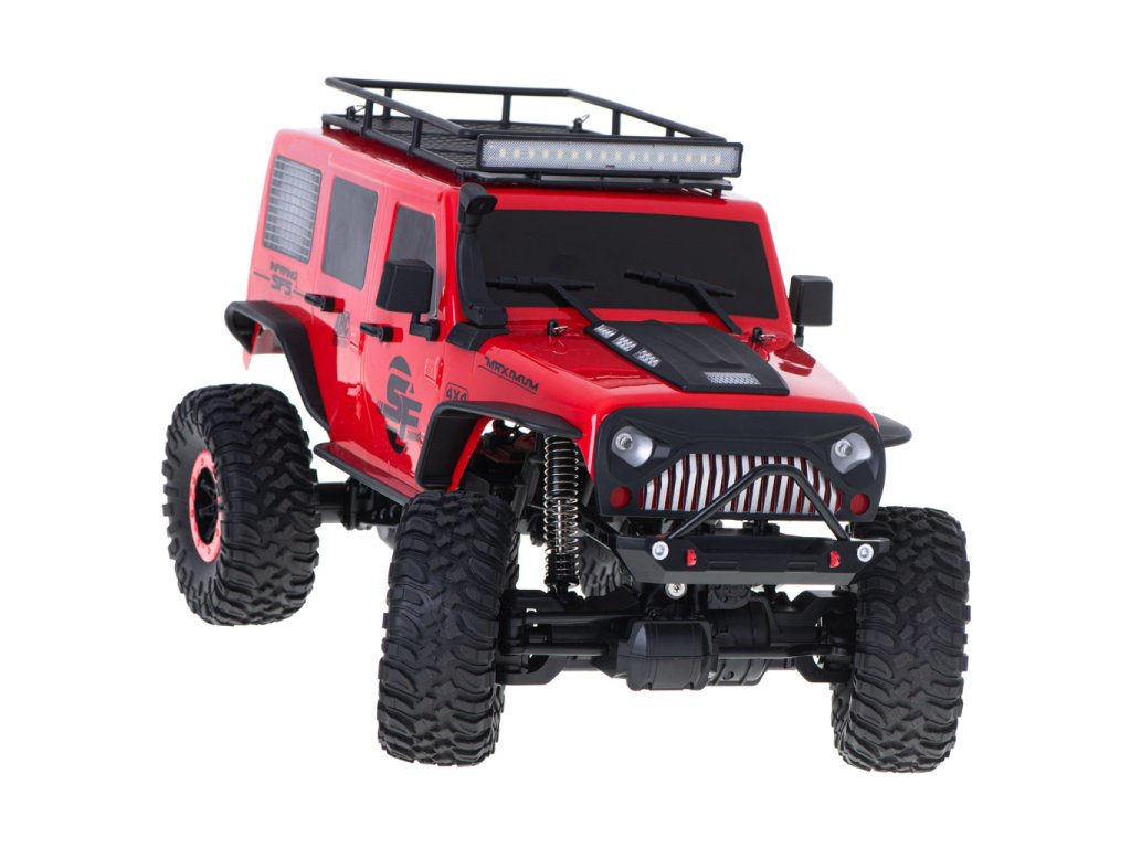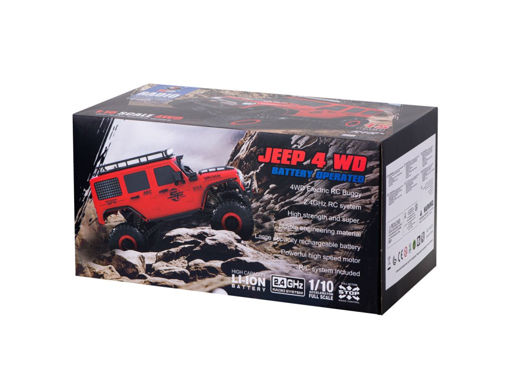 vozila udobno in enostavno. Idealno je za tiste, ki šele začenjajo z modeli na daljinsko upravljanje ali za izkušene uporabnike, ki želijo razširiti svojo zbirko.Vozilo navdušuje z izjemno veliko velikostjo in fantastičnim videzom - je izdelano v merilu 1:10 in posnema pravi džip.