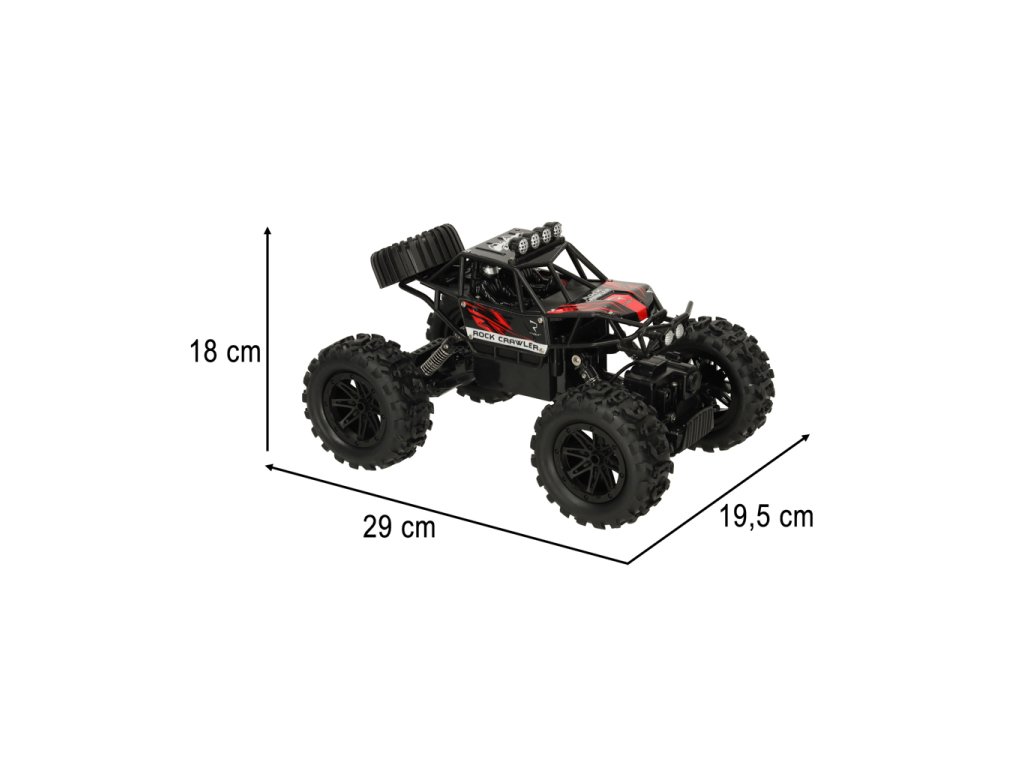 To vozilo 4x4 je pripravljeno osvojiti vsak teren! Velike protizdrsne pnevmatike s premerom 9,5 cm in amortizerji zagotavljajo izjemen oprijem tudi na najzahtevnejših površinah. Vozilo se ne boji niti strmih vzponov, niti pod kotom 45 stopinj!