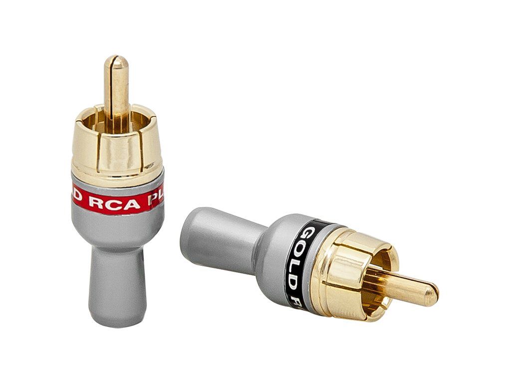 Dva kosa visoko kakovostnih RCA (chinch) vtičev, namenjenih za profesionalno uporabo.