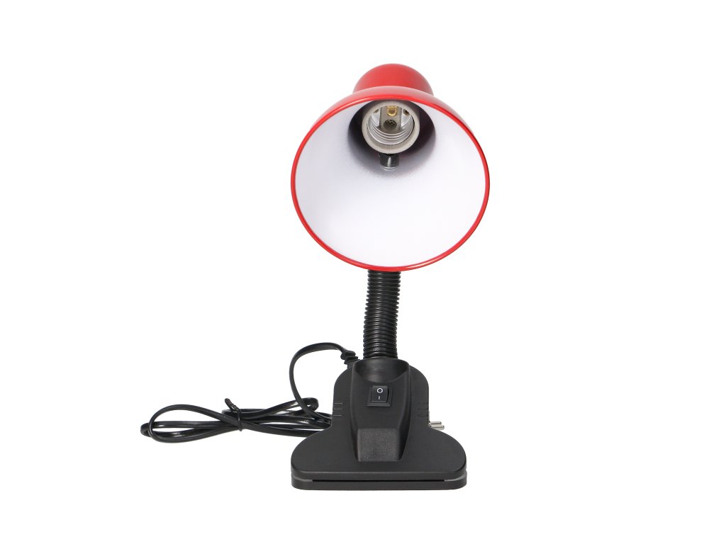 Rdeča namizna svetilka s sponko, E27, 40W