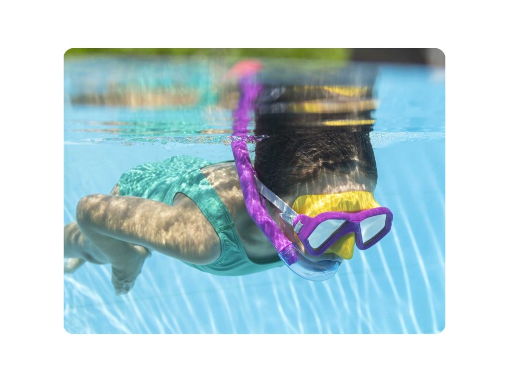 Zdaj se lahko potapljaš in uživaš v vodnih radostih do sitega! Plavalna maska, ki je del kompleta, ima leče iz polikarbonata.