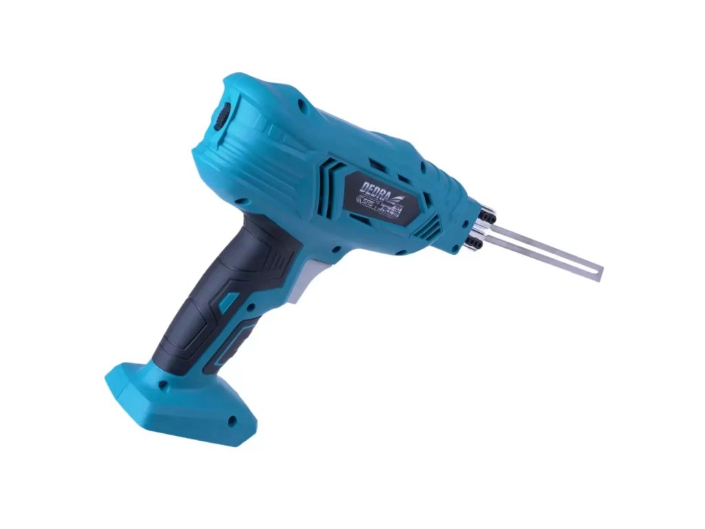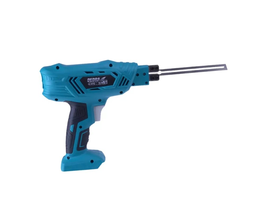 Polnilni termični rezalnik DED7082 se uporablja za rezanje delov iz poliamida: PP - polipropilen, PVC - polivinilklorid, EPS (polistiren), npr. polistirenske plošče, plastične vrvi. Robovi reza so popolnoma gladki, brez drobljenja ali neprijetnih drobtinc v primeru polistirena. Rezilo je zasnovano tako, da omogoča rezanje zelo zapletenih oblik. Stroj lahko reže materiale do maksimalne debeline 150/250 mm. Čas, potreben za dosego delovne temperature 500 °C, je le 6 s. Akumulatorski toplotni rezalnik DED7082 ima regulacijo temperature. Priporočene nadomestne rezila DED75191, DED75192, DED75193, DED75194