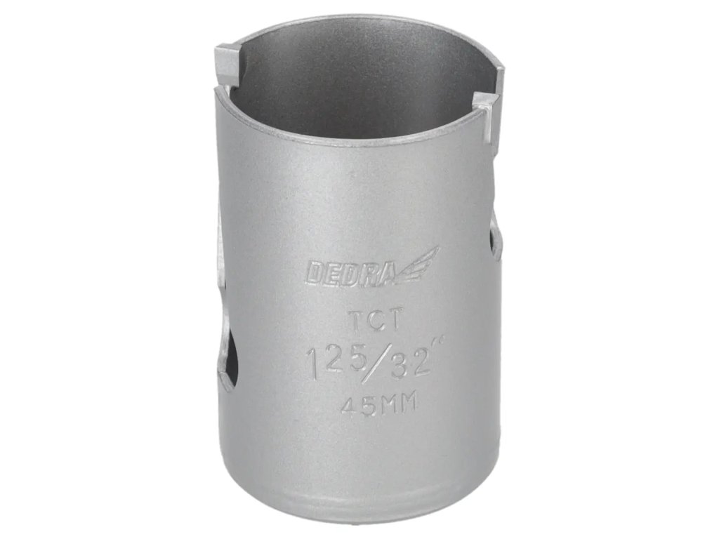 Prava velikost je navedena v opisu izdelka.Univerzalna žaga za luknje je nepogrešljivo orodje v delavnici za domače mojstre. Posebna konstrukcijarezalnega roba povečuje trdnost žage in izboljšuje vodljivost luknje. S pomočjo vpenjal HEX 10 mm 1 /2" 08X001 (priporočljivo za luknje: 08X019-08X030) in 5/8" vpenjal 08X002 (priporočljivo za luknje: 08X032-08X152) je mogoče uporabljati žage za luknje na vrtalnikih ali vbrizgavanju. S pomočjo vpenjala SDS+ 08X003 (priporočljivo za luknje: 08X 032 -08X152) je mogoče uporabljati žago za luknje DEDRA 08 X razširjeno s udarnim vrtalnikom v načinu brez udara. Za izboljšanje rezalnega učinka in povečanje trdnosti imajo luknje več vilicnih vložkov, ki učinkovito obdelujejo material. Univerzalni pilotni svedri DEDRA 08 X se lahko s primernim pilotnim svedrom uporabljajo za delo v lesu, kovinah, pohištvenih ploščah, PVC, mineralnih materialih, kot so keramične ploščice, porozni beton in silikati. Za povečanje trdnosti lukenj je jedro izdelano iz visokokakovostnega jekla HCS št. 45 z debelino 1,5 mm, zobje pa so izdelani iz volframovega karbida s 6 % kobalta (volframovo jeklo YG 6X). To izboljšuje kakovost in trajnost rezov ter povečuje učinkovitost vrtanja.