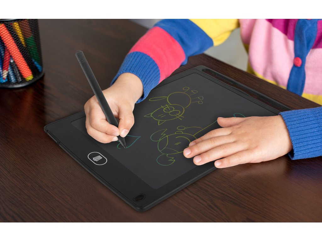 Elektronska tablica za risanje je opremljena z 8,5-palčnim LCD zaslonom, na katerem lahko prosto pišete ali rišete s priloženim pisalom. Ko informacije niso več potrebne, preprosto pritisnete gumb za čiščenje in slika bo izginila. Udobje uporabe zagotavljata majhna teža in vgrajeni magneti, s katerimi lahko tablico zlahka pritrdite na hladilnik.