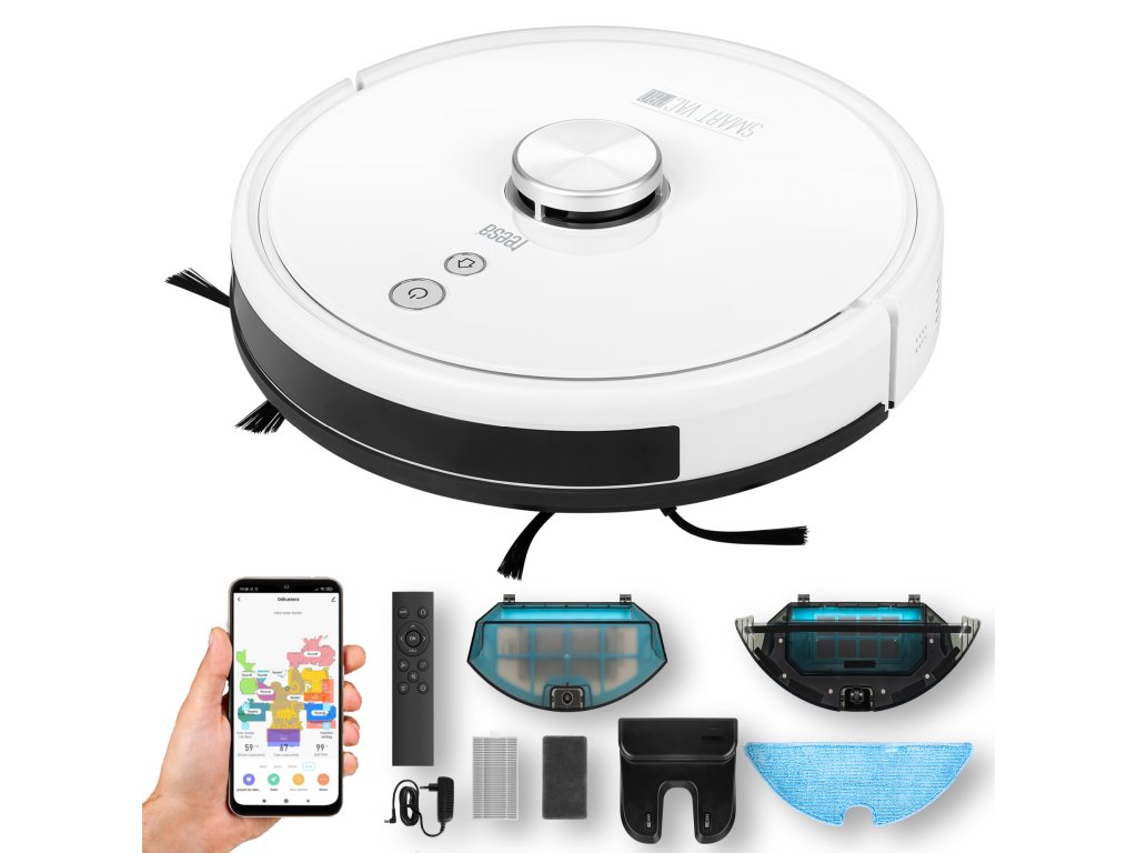Želite hitro osvežiti tla v hiši? Ne izgubljajte časa, zato so tu robotski sesalniki! Dovolj je, da pritrdite krpo in napolnite rezervoar, opremljen z funkcijo mokrega čiščenja, robot Teesa SMART VAC PRO ne bo le posesal, ampak tudi pomil tla v vašem domu.