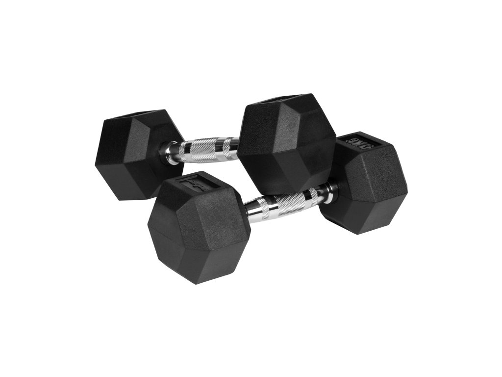 Komplet uteži je idealna izbira za tiste, ki želijo okrepiti svoje telo in izboljšati splošno kondicijo. Zahvaljujoč šestkotni obliki in gumirani prevleki okoli litoželeza se uteži HEX ne kotalijo po tleh, kar zmanjšuje tveganje poškodb ter nudi dodatno zaščito za tla.