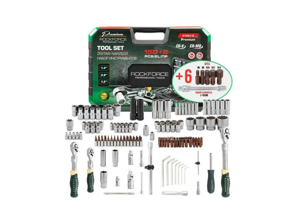 ROCKFORCE Komplet ORODJA 150 + 6 ELEMENTOV Premium Cr-Mo CrV