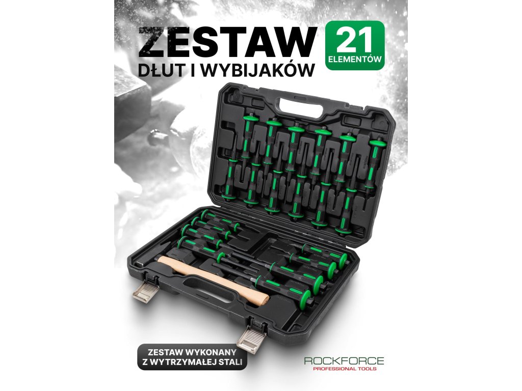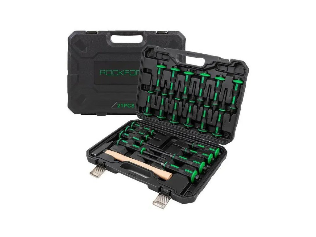 RockFORCE RF-5211K je popoln set profesionalnih dlet, udarcev, udarnih in pečatnih orodij, zasnovan z mislijo na natančno ključavničarsko, montažno in popravilsko delo. Ta bogat set s 21 elementi se bo izkazal tako v profesionalnih delavnicah kot v domačih aplikacijah, saj ponuja široko paleto možnosti – od grobega obdelovanja kovin do finih, natančnih del, ki zahtevajo najvišjo natančnost.