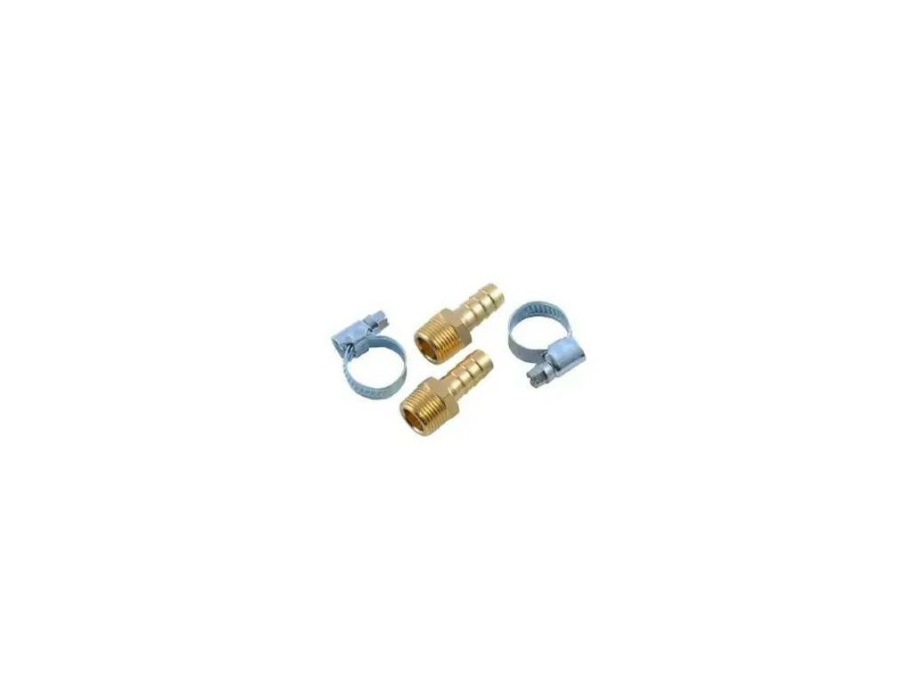 ROCKFORCE so popolna rešitev za hitro in tesno povezovanje pnevmatskih cevi v delavnicah in industrijskih inštalacijah. Skttov vsebuje dve medeninasti spojki z zunanjim navojem 1/2" in konico tipa jodla 8 mm, pa tudi dve kovinski objemki, ki zagotavljata trajno in varno pritrditev cevi.