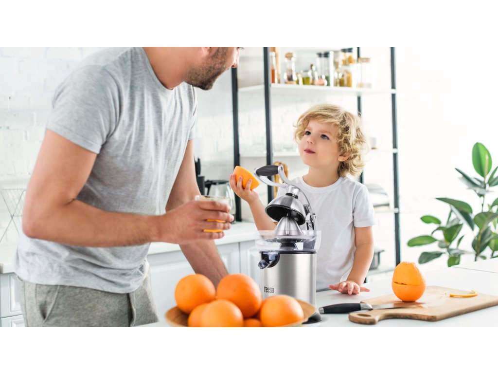 Kisel sok limone, sladek iz pomaranče ali rahlo grenak iz grenivke. Če vaša družina obožuje sok iz sveže iztisnjenih citrusov, imamo napravo, ki vam bo pomagala, da jih preprosto pripravite. Samodejni ožemalnik Teesa TSA3011 s posebnim ročajem iztisne sok iz vašega najljubšega sadja do zadnje kapljice.