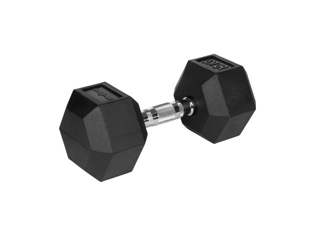 Komplet uteži je odlična izbira za tiste, ki želijo okrepiti svoje telo in izboljšati splošno kondicijo. Zahvaljujoč šestkotni obliki in gumijasti oblogi okoli litoželeza, se uteži HEX ne kotaličijo po tleh, kar zmanjšuje tveganje za poškodbe in dodatno ščiti tla.