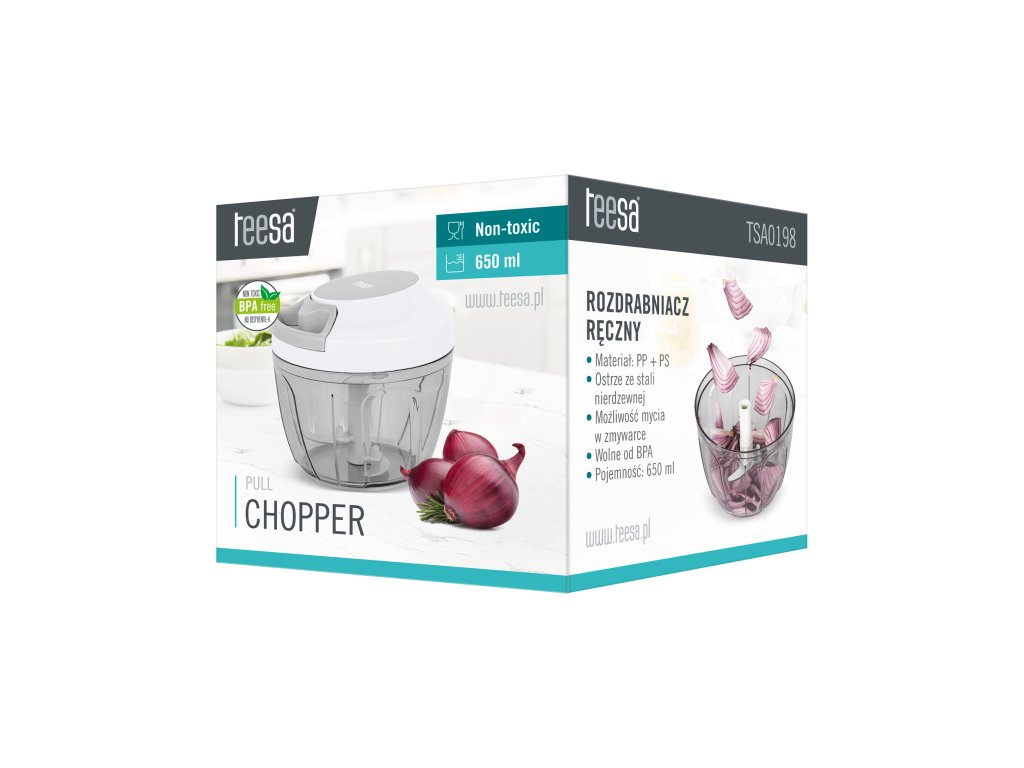 Potrebujete majhno napravo, ki vam bo pomagala hitro pripraviti vašo najljubšo solato ali jajčno pasto? Ali pa se odpravljate na taborjenje in potrebujete sekljalnik za čebulo? Izberite ročni mini drobilnik za zelenjavo Teesa s prostornino 650 ml, ki z uporabo treh, na različnih nivojih razporejenih rezil, z lahkoto razseka čebulo, korenje, oreščke ali zelišča.