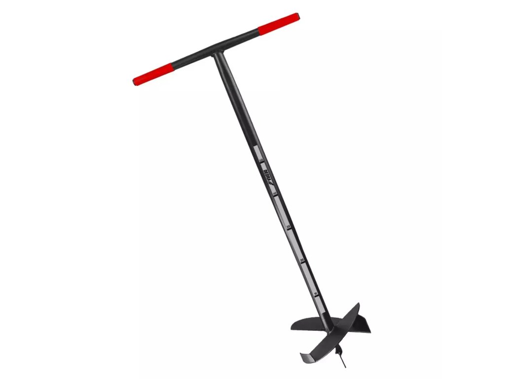 Ročni zemeljski vrtalnik, splošno znan kot zemeljski vrtalnik, je uporaben pripomoček povsod tam, kjer je potreben majhen, a globok izkop. Še posebej ga bodo cenili tisti, ki potrebujejo ustvariti vrsto lukenj za količke, stebre itd. Enostavna konstrukcija brez spojev in povezovalnih elementov olajša njegovo uporabo. Enostavna konstrukcija nima nobenih pritrdilnih elementov, kar orodju daje zelo visoko trdnost pri vrtanju tudi v trdo, zgoščeno zemljo. Profilirani razdeljeni noži prodrejo v zemljo še bolj učinkovito in z manj odpora, s čimer se zemlja dviga iz luknje navzgor. Kaljena glava iz trde borovega jekla zagotavlja odpornost proti mehanskim poškodbam. Kaljena glava iz trdega borovega jekla je odporna proti mehanskim poškodbam. Ročaj v obliki črke T je zaključen z gumiranim oblikovanim ročajem za večje udobje.