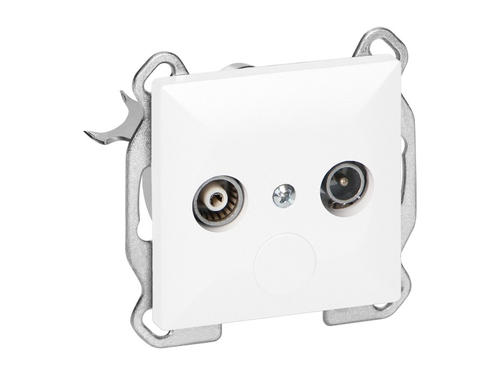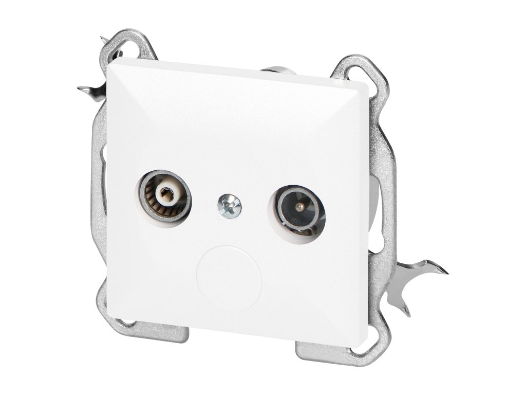 Modularna serija s simetričnim sistemom plošč okvirjev (za 1-, 2-, 3-, 4-, 5-modulov) omogoča montažo izdelka v vodoravni in navpični legi. Sodobni hitri priključni mehanizem (žice se povežejo z neposrednim potiskom v ohišje) omogoča varno in zanesljivo namestitev in odstranitev žic. Vtičnice so opremljene s tradicionalnimi vijaki. Notranja zasnova terminalov zagotavlja varno povezavo žic od 0,75 mm? do 2,5 mm?. Močna in robustna montažna mreža ter visokokakovostni samozatezni elementi omogočajo stabilno in varno namestitev v omarici. Posebni vzmetni elementi olajšajo pritrditev okvirja v ohišje.RTV končna vtičnica, zasnovana za montažo na splošno. Omogoča povezavo radijskega in televizijskega sprejemnika (zemeljska digitalna ali analogna TV). Uporablja se v zaprtih prostorih (IP20).