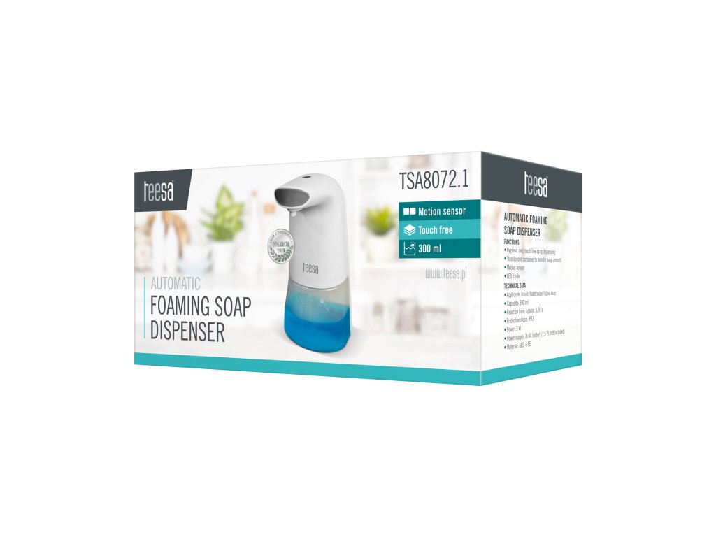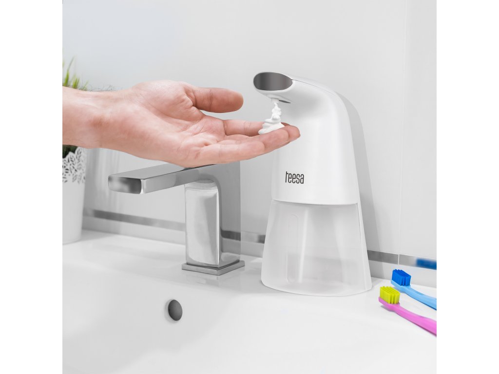 Samodejni dozirnik mila je opremljen s senzorjem gibanja, kar pomeni, da je dovolj, da roke približate dozirniku, da se nanaša doza pene. Dozirnik mila znamke Teesa ima veliko kapaciteto posode 300 ml, zato vam ni treba skrbeti za pogosto dolivanje. Poleg tega je polprozoren, kar bistveno olajša nadzor nad količino mila. Univerzalnost dozirnika povečujejo tudi možnost uporabe ne le tekočega mila, ampak tudi milne pene, kar bo zagotovo všeč otrokom in jih spodbudilo k pogostejšemu umivanju rok.