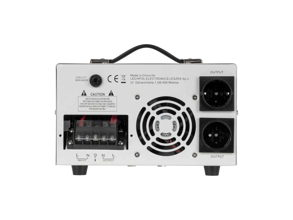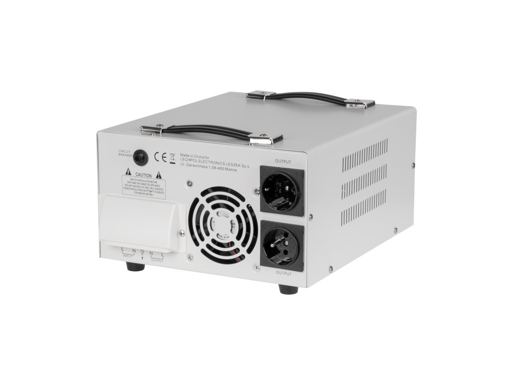 Izhodna moč: 5000 VA Vhodna napetost: 130-260 VAC Vhodna frekvenca: 50 Hz Izhodna napetost: 230 VAC Izhodna frekvenca: 50 Hz Natančnost: +/- 3% Učinkovitost: 98% Izhodna napetost: enofazna Transformator: toroidni transformator C.R.G.O. 2 izhodni vtičnici: nemški, francoski (poljski) Zaščita: proti kratkemu stiku, prenapetosti, pregrevanju Delovna temperatura: 0-40°C Vlažnost zraka: 10-90% Temperatura shranjevanja: -15-45°C Teža: 11,8 kg Dimenzije: 302 x 260 x 146 mmIzhodna moč: 5000 VA