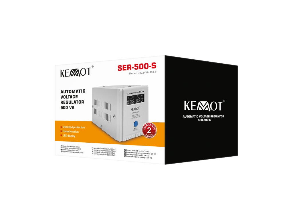 Ne glede na obremenitev omrežja in nihanja izhodne napetosti, stabilizator KEMOT SER-500-S ohranja napetost na ravni 230 V ±8%, kar omogoča učinkovito delovanje vseh naprav, vključno z občutljivimi na kakovost omrežne napetosti. Regulacija poteka samodejno, kar zagotavlja visoko natančnost izhodne napetosti. KEMOT SER-500-S je uporabna tako doma kot v pisarni, idealno se izkaže za televizorje in RTV naprave, pa tudi za zvočnike, mini stolpe in druge avdio/video naprave ter računalnike.