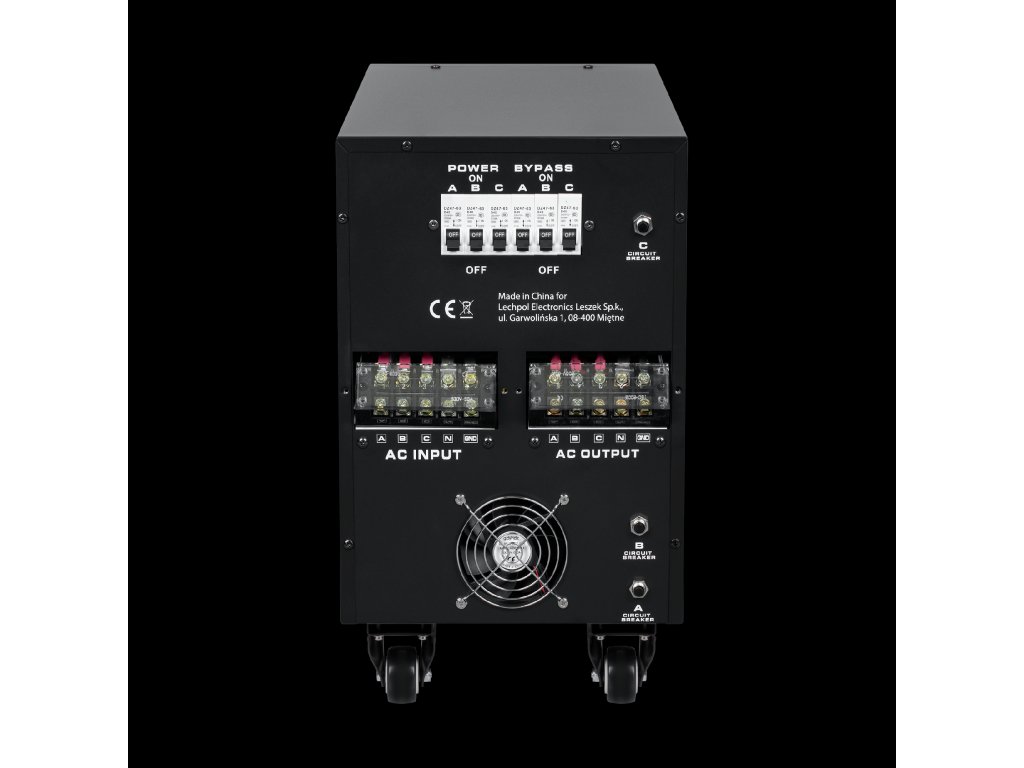 V enofaznem načinu lahko vsaka faza deluje neodvisno od drugih. Ne glede na obremenitev omrežja in nihanje vhodne napetosti, stabilizator KEMOT PROavr-25 ohranja napetost pri 230 V ± 3%, kar omogoča učinkovito delovanje vseh naprav, vključno s tistimi, ki so občutljive na kakovost omrežne napetosti. Regulacija je samodejna in zagotavlja visoko natančnost izhodne napetosti. Napaka pri delovanju ene od faz ne vpliva na delovanje ostalih.