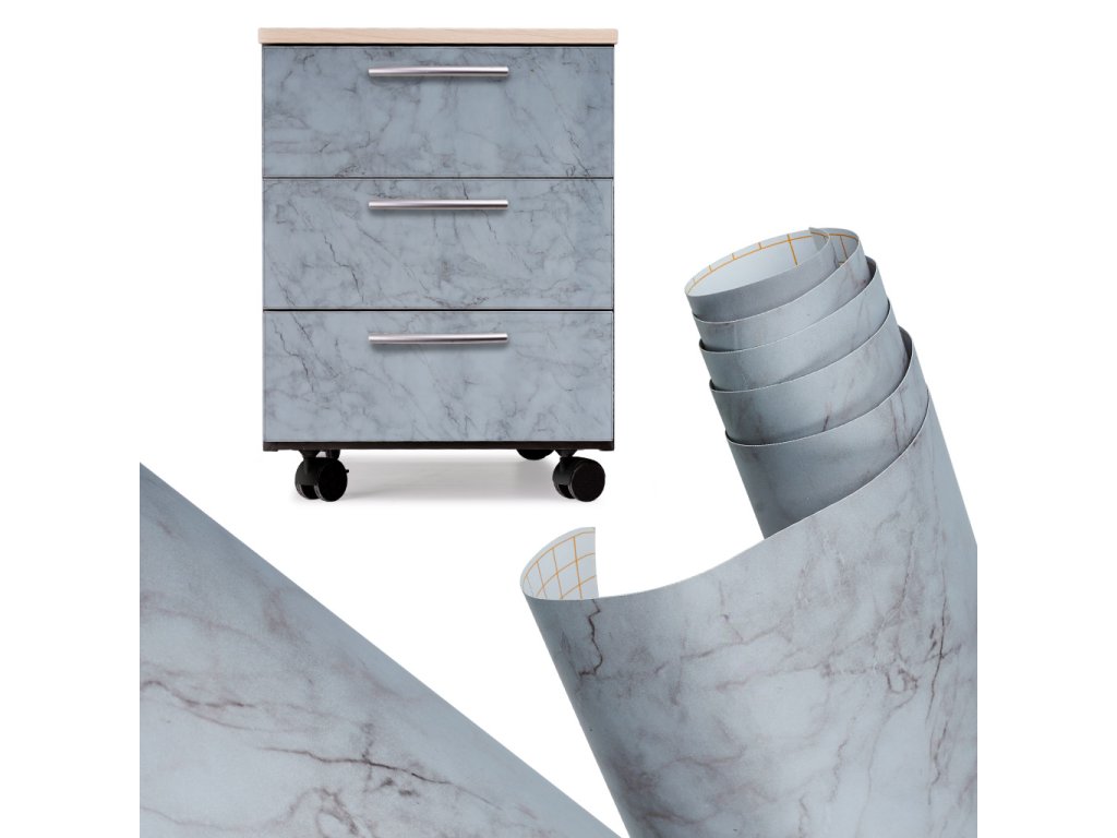 Naša samolepilna folija, siva marmorja, je idealna za dajanje vašemu pohištvu in notranjosti vašega doma edinstven značaj. Elegantna površina skrije vse nepravilnosti, prikrije praske, prasko in spremembo barve. Zavitem predmet bo dobil edinstven videz in dodal vašemu okolju edinstveno vzdušje.