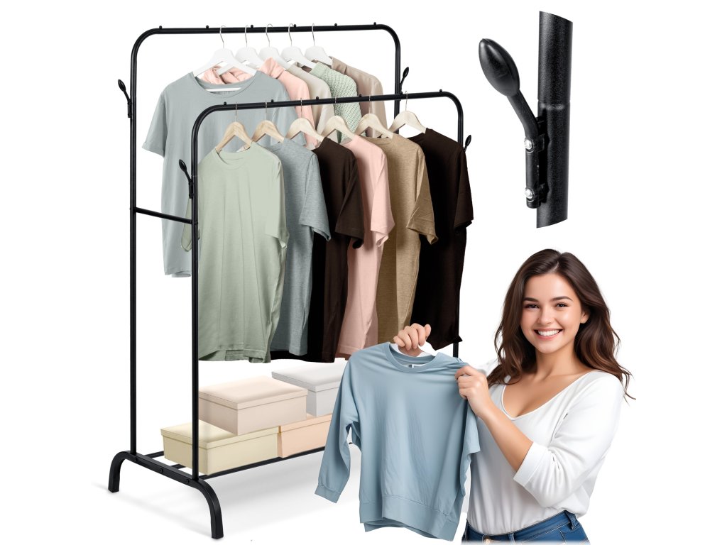 Funkcionalen: Dvojni obešalnik s polico za čevlje bo organiziral jakne in obutev ter zagotavljal red in udobje.