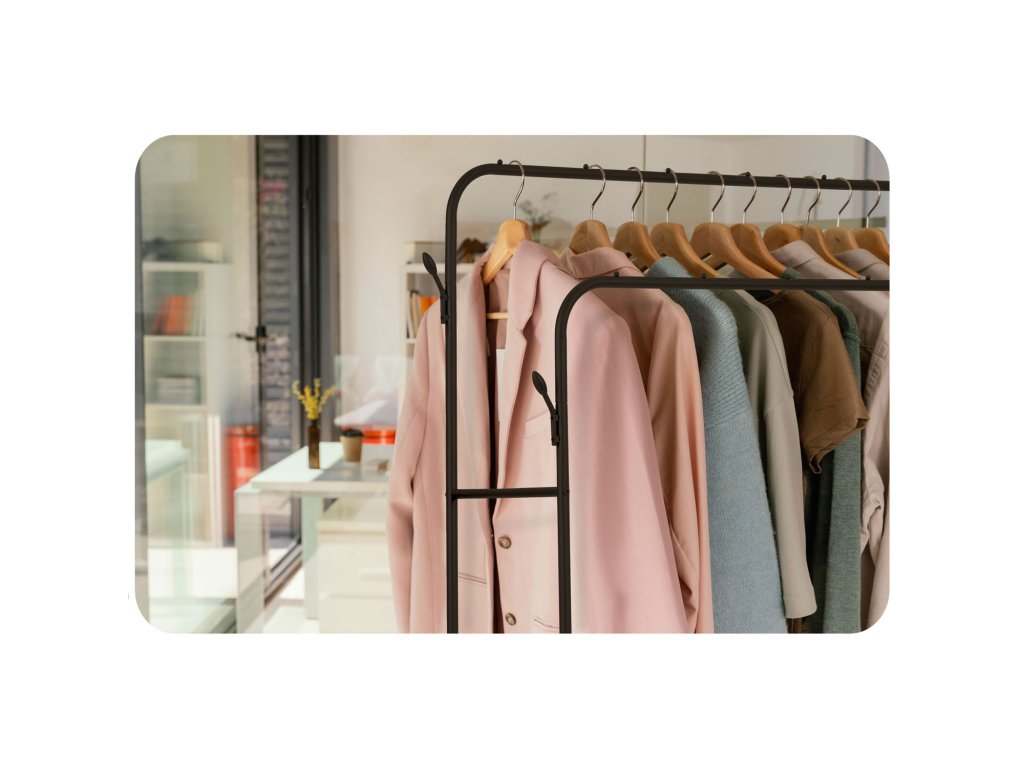 omejevalniki na policah omogočajo ločevanje obešalnikov in preprečujejo nered.