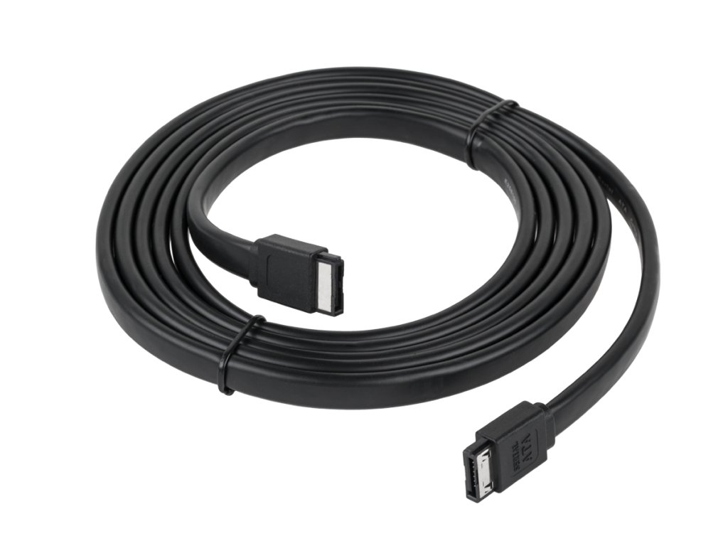 Visokokakovosten SATA kabel za povezovanje trdih diskov, DVD zapisovalnikov, Blu-Ray itd. v notranjost računalnika. Deluje z vmesnikom SATA II (združljiv s SATA I). Največja prepustnost je 3 Gb/s. Kabel je elastičen in ozek, kar olajša namestitev in izboljša pogoje hlajenja v notranjosti računalnika. Dolžina: 1 mVisokokakovosten SATA kabel za povezovanje trdih diskov, DVD zapisovalnikov, Blu-Ray itd. v notranjost računalnika.