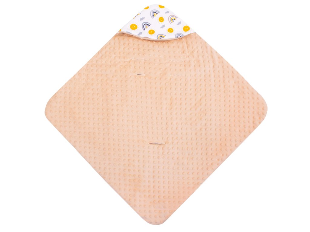 - Notranji material: tkanina tipa minky - puhasta in mehka, z vtisi, v bež barvi
