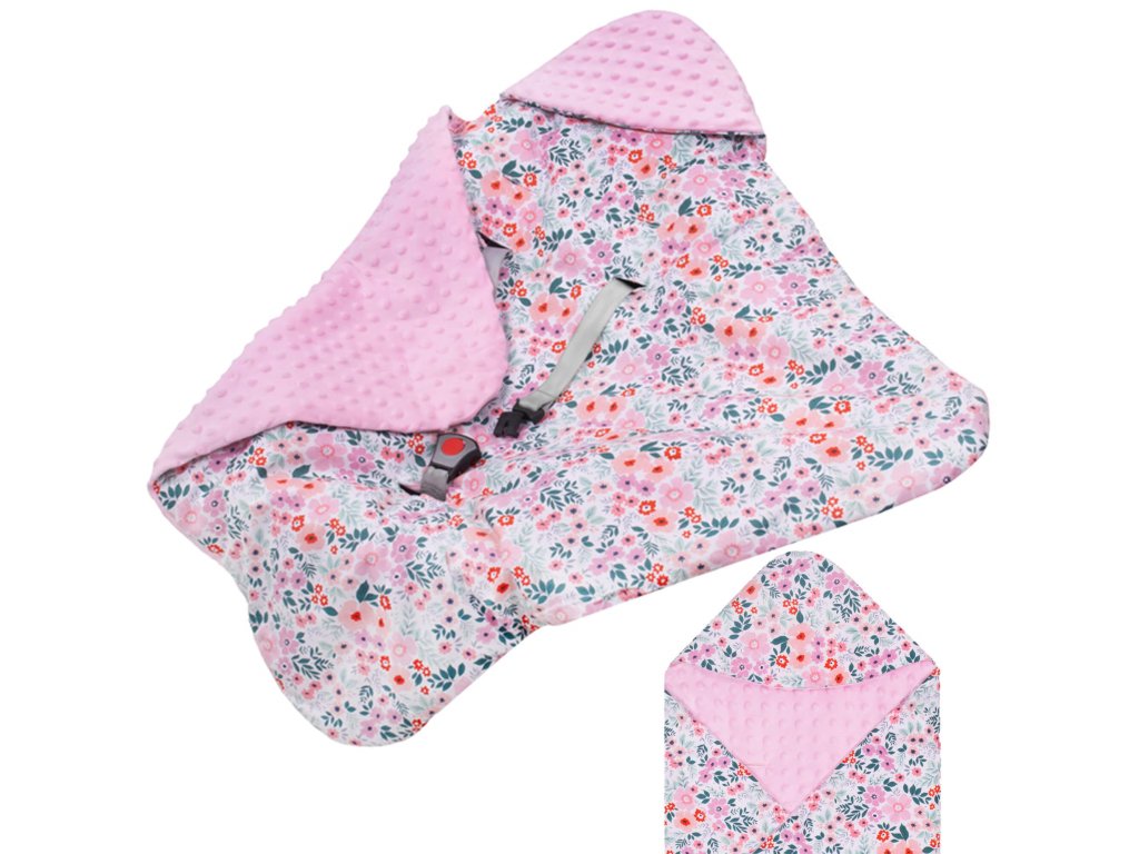 - Odeja ima odprtine za pasove v avtosedežu/nosilki: 1 spodnjo + 2 x 2 zgornje (nastavljivo na dveh stopnjah)