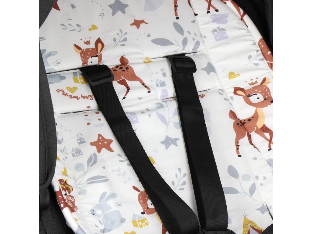 - Vložek je opremljen z odprtinami za varnostne pasove (2 spodnji, 2 stranski, 2x2 zgornji)