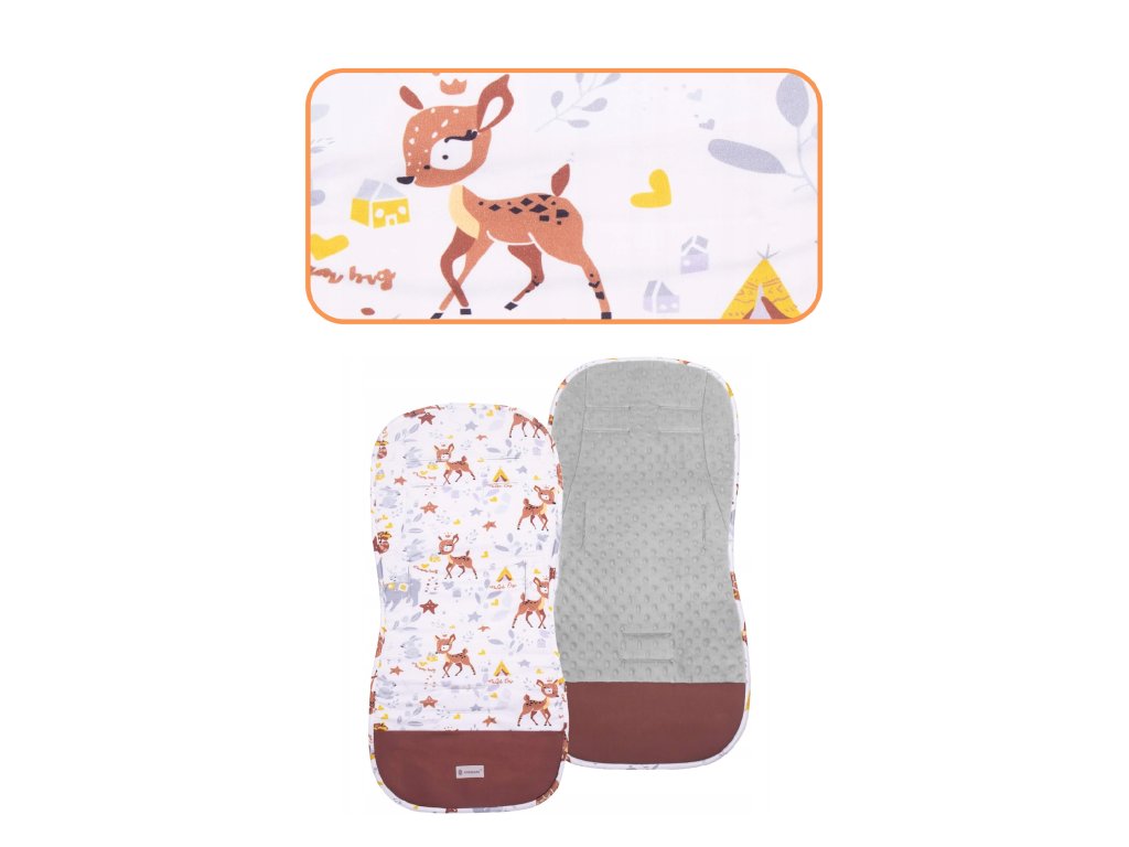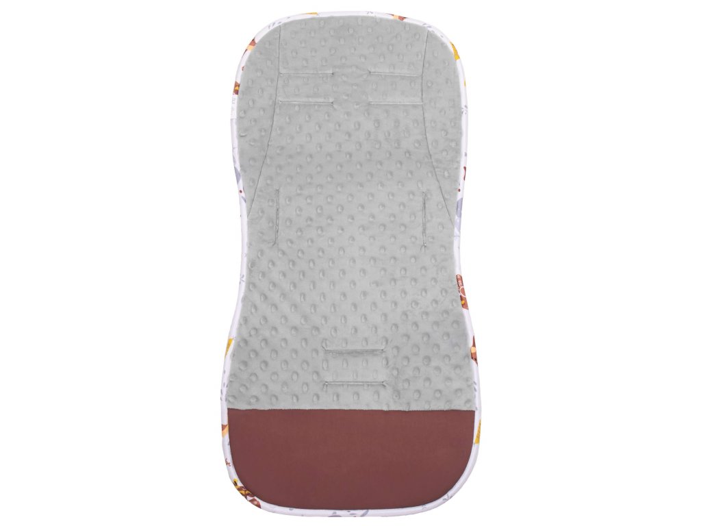 - Notranji material: tkanina tipa minky - puhasta in mehka, z reliefom, sive barve.