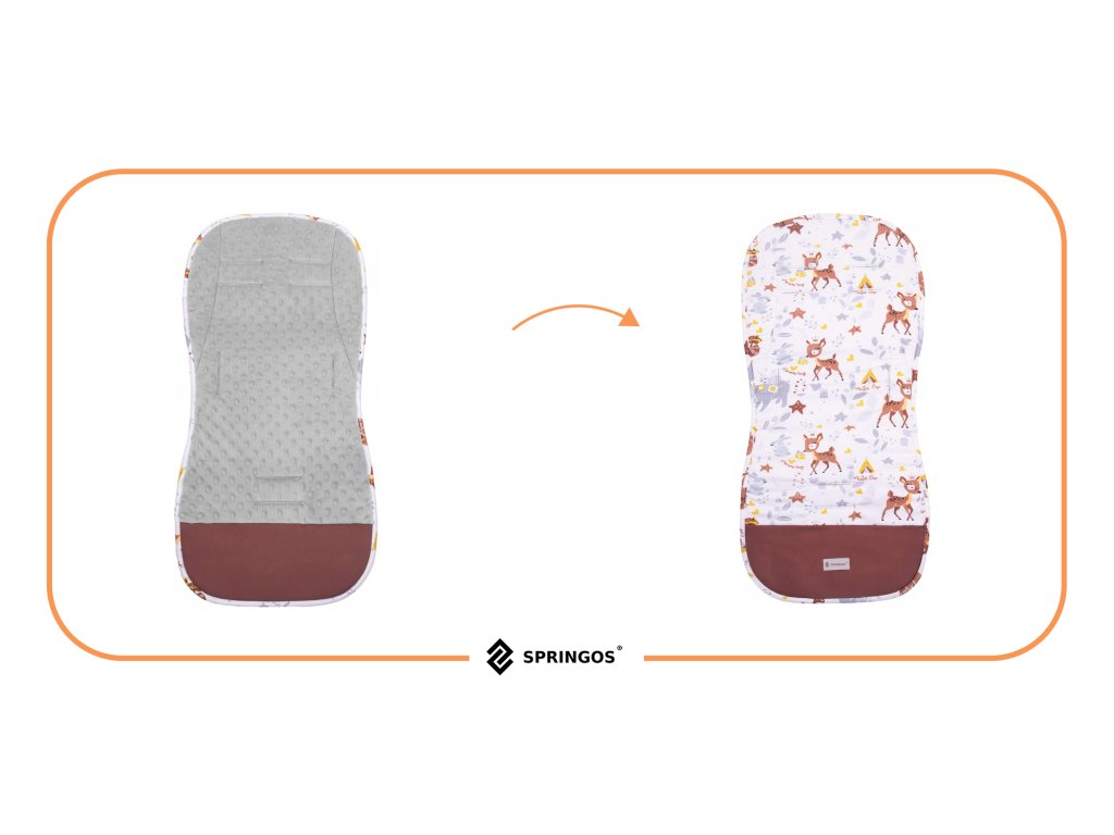 - Na obeh straneh panel spodaj iz gladke tkanine v rjavi barvi (na zunanji strani - našitek z logotipom Springos v sivi barvi)