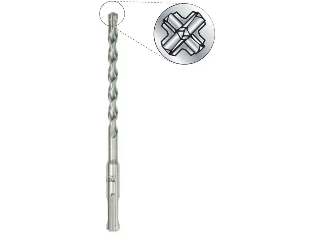 Kvatrov sveder za beton z vpenjalnim držalom SDS PLUS (SDS+). Primeren za uporabo z vsemi udarnimi vrtalniki z vpenjalnim držalom SDS PLUS (SDS+) za vrtanje v beton, opeko in druge gradbene materiale. Sveder se odlikuje z dvojnim širokim vložkom, ki je globoko vstavljen in povezan z telesom svedra. Dvojni utori omogočajo učinkovitejše prodiranje v odkrito armaturo pri vrtanju v beton, kar zmanjšuje tveganje za zagozditev. Vpenjalno držalo SDS Plus olajša in pohitri delo ter menjavo svedra.