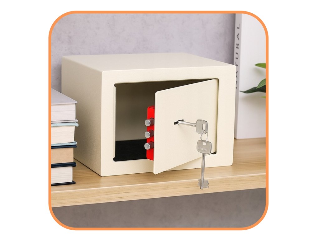 Dodatno: možnost montaže na stene in tla (vijaki so vključeni), klobučevinasta podloga, ki utiša notranjost sefa